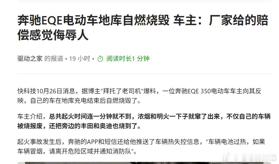 说实话,奔驰电动车是我在新闻里看到自燃次数最多的!