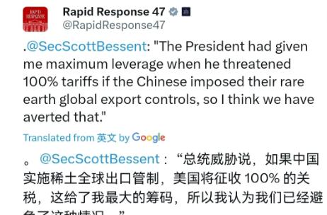 贝森特出来讲话了,中美达成的部分协议被美国曝光!10月26日,美国财长贝森特在接受采访时表示,特朗普总统在11月1日威胁要征收100%的关税,给了我很大的谈判筹码——我相信我们已经达成了一个非常实质性的框架,可以避免这种情况,并允许我们与中国讨论许多其他事情。所以我认为我们已经避免了这种情况。 10月26日,一则重磅消息如惊雷般在国际舆论场炸开——美国财长贝森特在接受采访时,主动揭开中美部分协议的神秘面纱,还抛出一个令人咋舌的细节:特朗普总统竟在11月1日放出威胁,要对中国征收100%的关税!这背后究竟藏着怎样的玄机? 贝森特回忆起当时的紧张氛围,仍心有余悸。他说,特朗普这一威胁,如同在谈判桌上投下了一颗重磅炸弹,瞬间让局势变得剑拔弩张。但正是这看似疯狂的举动,却意外成了他手中的一张王牌,为谈判带来了意想不到的转机。 想象一下,在国际贸易的棋盘上,关税就是那关键的棋子,一旦落子,可能引发连锁反应,波及全球经济的每一个角落。特朗普的这一威胁,无疑是在向中国施压,试图在谈判中占据上风。 然而,中国并未被这突如其来的压力打乱阵脚,而是以沉稳和智慧应对这场没有硝烟的战争。贝森特透露,在特朗普抛出威胁后,中美双方的谈判团队迅速进入紧急状态。 会议室里,灯光彻夜不灭,双方代表你来我往,唇枪舌剑。每一个条款、每一个数字,都经过了反复的推敲和权衡。这不仅仅是一场经济利益的博弈,更是一场智慧和耐力的较量。 在这场激烈的交锋中,贝森特感受到了前所未有的压力。但他也敏锐地意识到,特朗普的威胁虽然猛烈,却也暴露了美方的急切心态。这让他看到了达成协议的希望,因为真正的强者,从不会在谈判中轻易亮出底牌。 经过无数个日夜的艰苦谈判,双方终于达成了一个实质性的框架。贝森特兴奋地表示,这个框架就像一座坚固的桥梁,连接着中美两国的经济利益,避免了贸易战的全面爆发。更重要的是,它为双方进一步讨论其他重要问题奠定了基础。 这个框架的达成,对于中美两国乃至全球经济来说,都具有深远的意义。它避免了因贸易战而引发的经济动荡,保护了无数企业的利益,也让消费者免受物价飞涨之苦。同时,它也为中美关系的缓和打开了一扇窗,让双方有机会在更多领域展开合作。 那么,这个框架究竟包含了哪些内容呢?虽然贝森特并未透露太多细节,但从他的言辞中可以感受到,这绝对是一个经过深思熟虑、兼顾双方利益的方案。它可能涉及关税调整、市场准入、知识产权保护等多个方面,旨在构建一个更加公平、合理的国际贸易秩序。 回顾整个谈判过程,我们不禁为中美双方的智慧和勇气所折服。在面对巨大的压力和挑战时,双方都没有选择退缩,而是通过对话和协商,找到了解决问题的最佳途径。这种精神,不仅值得中美两国学习,也为全球其他国家树立了榜样。 如今,随着协议框架的达成,中美贸易关系迎来了新的转机。但我们也清楚,这只是一个开始,未来的路还很长。双方需要在实践中不断检验和完善这个框架,确保它能够真正发挥作用,为两国和世界带来更多的福祉。 在这个充满不确定性的时代,中美作为全球最大的两个经济体,其贸易关系的走向牵动着世界的神经。贝森特的这次爆料,让我们看到了中美谈判背后的惊险与智慧,也让我们对未来充满了期待。 你对中美这次达成的协议框架有什么看法呢?是觉得它将为全球经济带来新的机遇,还是担心其中可能隐藏着未知的风险?快来评论区留下你的观点吧!