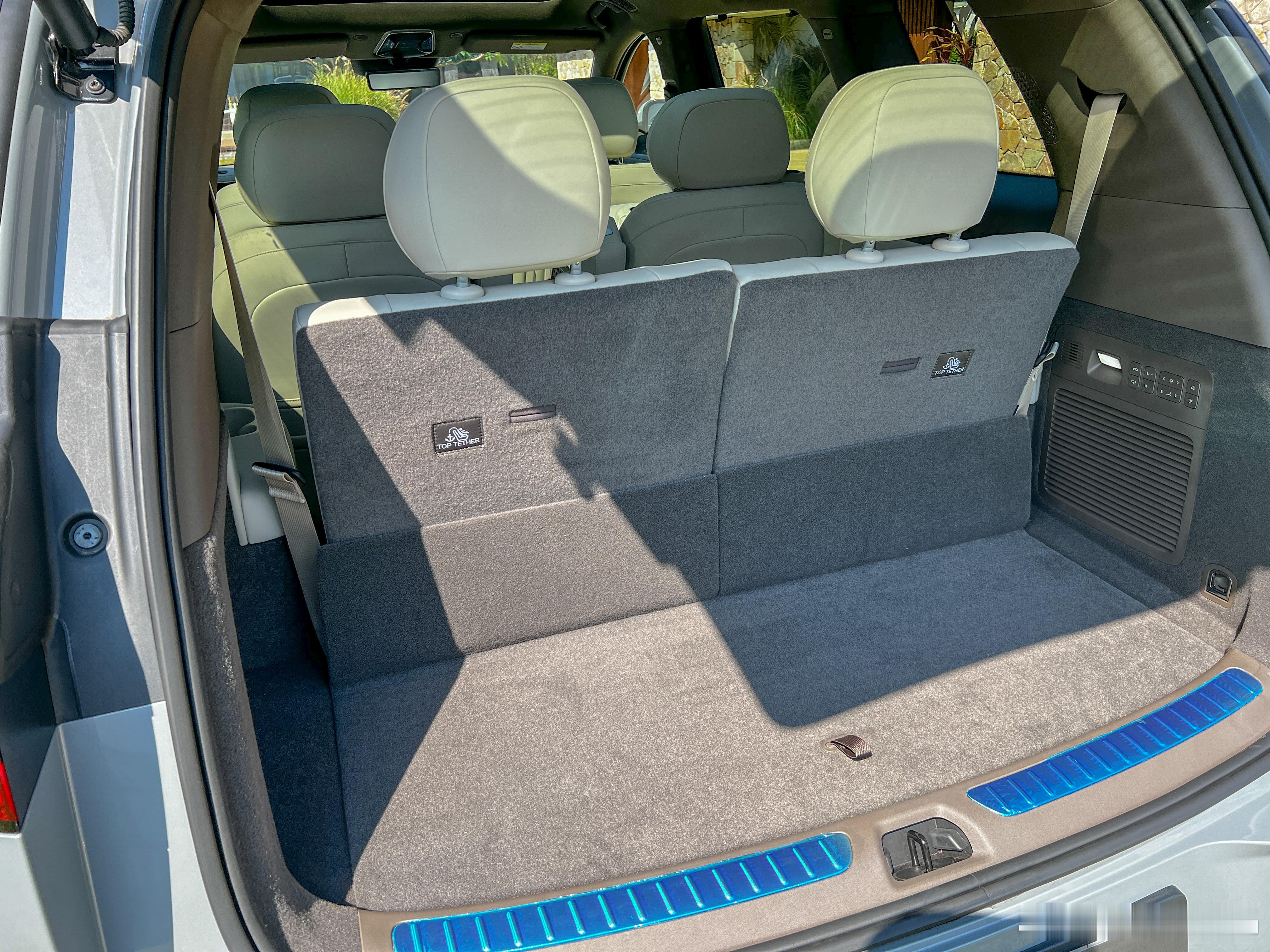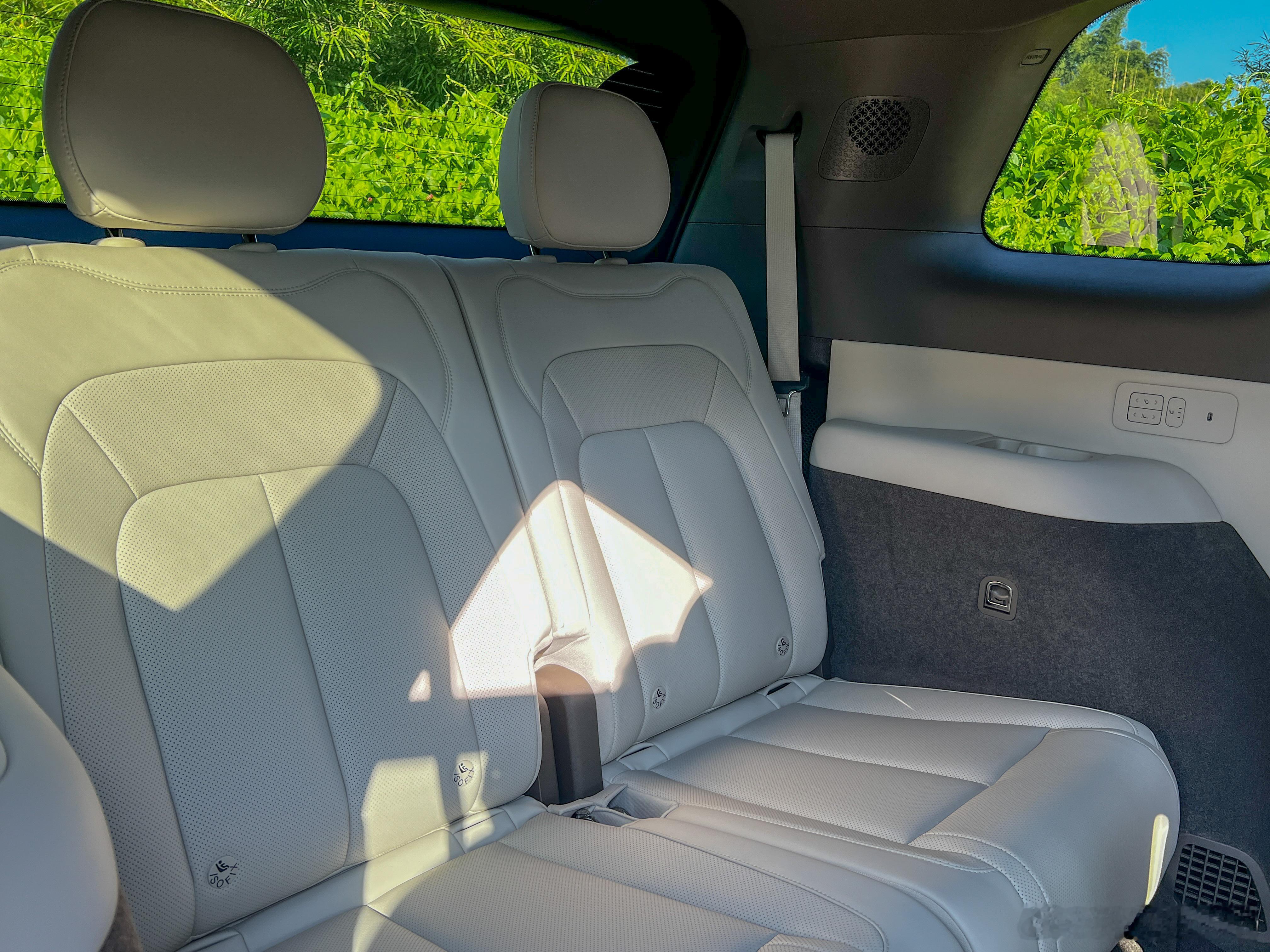 5【座舱体验十分舒适】全部座椅支持电动调动调节,一排、二排座椅通风、加热、按摩一应俱全;三排座椅支持100mm的前后滑移和121度的靠背调节,配备加热、出风口等。冰箱彩电冰在线,冷暖三开门的冰箱,一共11L的容积,调温-6℃—15℃冷藏,加热35℃—50℃为宝宝温奶;后排17.3英寸吸顶屏,显示清晰还带有防眩光设计。
