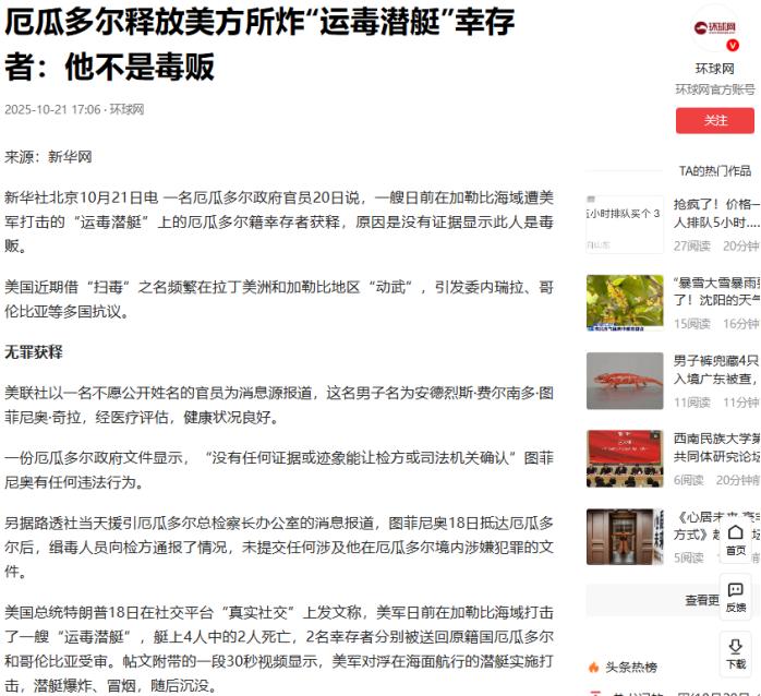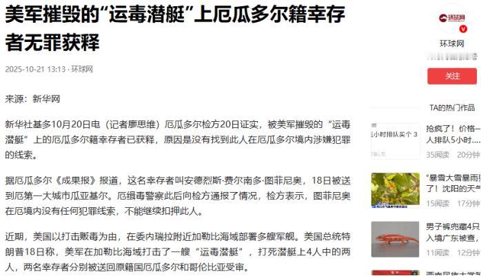 摧毁一艘潜艇,只是开胃菜!美国真正的目标,是把中国在委内瑞拉的10亿美金石油设施,变成‘人质’!这才是美军陈兵加勒比海的真正图谋!   那艘被美军打沉的潜艇,看着挺唬人,美军说上面是毒贩,结果后来厄瓜多尔的幸存者放了,因为压根没找到犯罪证据,连美国国会自己都没拿到确凿的证据证明那是运毒船。   美国总统特朗普当初言之凿凿宣称艇上载有非法麻醉品,还附上打击视频造势,转头就被自家司法体系拆了台,厄瓜多尔检方核查后直接放人,明摆着这场“缉毒行动”从一开始就是场戏。   美军这套说辞站不住脚的地方不止一处,2025年8月起他们就以打击贩毒为名在委内瑞拉附近部署军舰,可击沉所谓“运毒船”、打死“毒贩”的战绩里,从来没见过能公开的实证。   美军在加勒比海的兵力部署早就暴露了真实意图。当前这片海域里,1艘“黄蜂级”两栖攻击舰、2艘“圣安东尼奥级”登陆舰、1艘“提康德罗加级”巡洋舰外加3艘“伯克级”导弹驱逐舰一字排开,10架F-35B隐形战斗机、20架MV-22“鱼鹰”运输机随时待命,还有1艘核潜艇在水下潜伏,4500名陆战队员已完成战备集结。   这规模哪里是缉毒,美国国会研究服务处的报告都直言,这样的部署完全具备大规模两栖作战能力,随时能突袭委内瑞拉沿海关键节点。   2025年美军在该区域的巡逻次数比去年涨了近30%,F-35战机更是多次逼近委海岸75公里处的飞行情报区,与其说是展示肌肉,不如说是在勘察攻击路线。   中国在委内瑞拉那10亿美金的石油设施,才是美军真正的眼中钉。   俄罗斯媒体9月披露,中方投建的新型浮动原油生产设施已在马拉开波湖开工,这片委内瑞拉第二大产油区的平台,要把西部两座关键油田的日产量再提6万桶,还得推动近100口油井重启。   这笔投资精准戳中了美国的痛处——委内瑞拉已探明石油储量全球第一,而中国是其最大买家,2024年进口量达1600万吨,占中国石油进口总量的2.8%。   双方持续十余年的“石油换贷款”合作更是深度绑定,2025年新增的40亿美元授信,全靠每天10万桶原油和成品油偿还,这些设施就是合作的核心命脉。美军把它们当成“人质”,等于掐住了中委能源合作的喉咙。   往前翻历史,美军干这种事可不是头一回。上世纪80年代,尼加拉瓜桑地诺政权推翻美国扶持的独裁者后,里根政府直接让中情局出面,支持反政府武装在七周内五次袭击石油设施,科林托港和本杰明·塞莱东港的储备库被炸,400万加仑燃料付之一炬,相当于该国一周的消费量。   当时《纽约时报》就戳破真相,打击工业设施比直接作战更能快速削弱目标政权。国际法院后来判美国违法,联大94比3的投票要求赔偿,可美国理都不理。   如今这套老套路换了个舞台,只是当年的目标是反美政权,现在多了个中国的能源资产。   美军的小动作早已露出端倪。9月刚宣布制裁中国电子进出口有限公司,借口荒谬到说其“支持马杜罗政权破坏民主”,外交部直接点破这是炮制借口打压中企。   军事上更不含糊,航母群堵在加拉加斯门口,核潜艇在石油设施附近海域游弋,明摆着是用武力威慑。   委内瑞拉海军陆战队严阵以待时,连装备都是中国造的VN-16突击炮和VN-18两栖战车,这场潜在冲突里藏着的中美装备对峙,恰是双方角力的缩影。   美国战略与国际研究中心的人说得直白,行动就是要让马杜罗倒台,清除核心执政者。而控制石油资源是关键一步,既可以向欧佩克施压,又能切断中国在西半球的能源立足点。   那艘被击沉的潜艇不过是个由头,就像当年用“大规模杀伤性武器”借口打伊拉克一样,缉毒的幌子下,藏着的是对能源和地缘利益的算计。   只要中国的石油设施还在委内瑞拉运转,美军的军事存在就不会撤离,这场把能源资产当“人质”的博弈,恐怕还得持续很久。