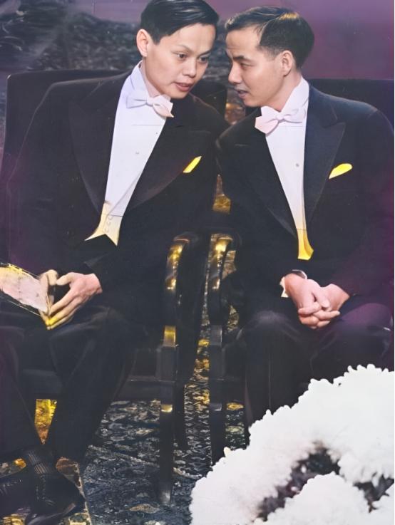 这是杨振宁与李政道在诺贝尔奖颁奖典礼现场。这一年,杨振宁35岁,李政道只有31岁