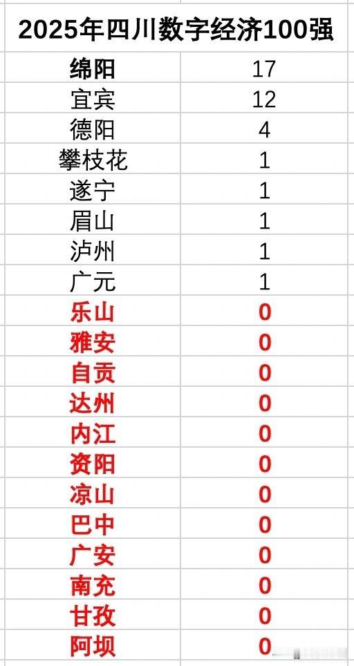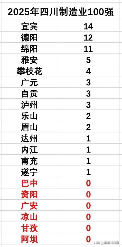 2025四川企业百强榜发布! 企业百强:攀枝花4家 制造业百强:攀枝花4家 服务业百强:攀枝花:3家 数字经济百强:攀枝花1家 总体来看,攀枝花百强企业位居四川地级市第五位,结合经济体量来看还是不错。 盐边四川资源集团的几个项目投产后,应该还会增加更多企业!!