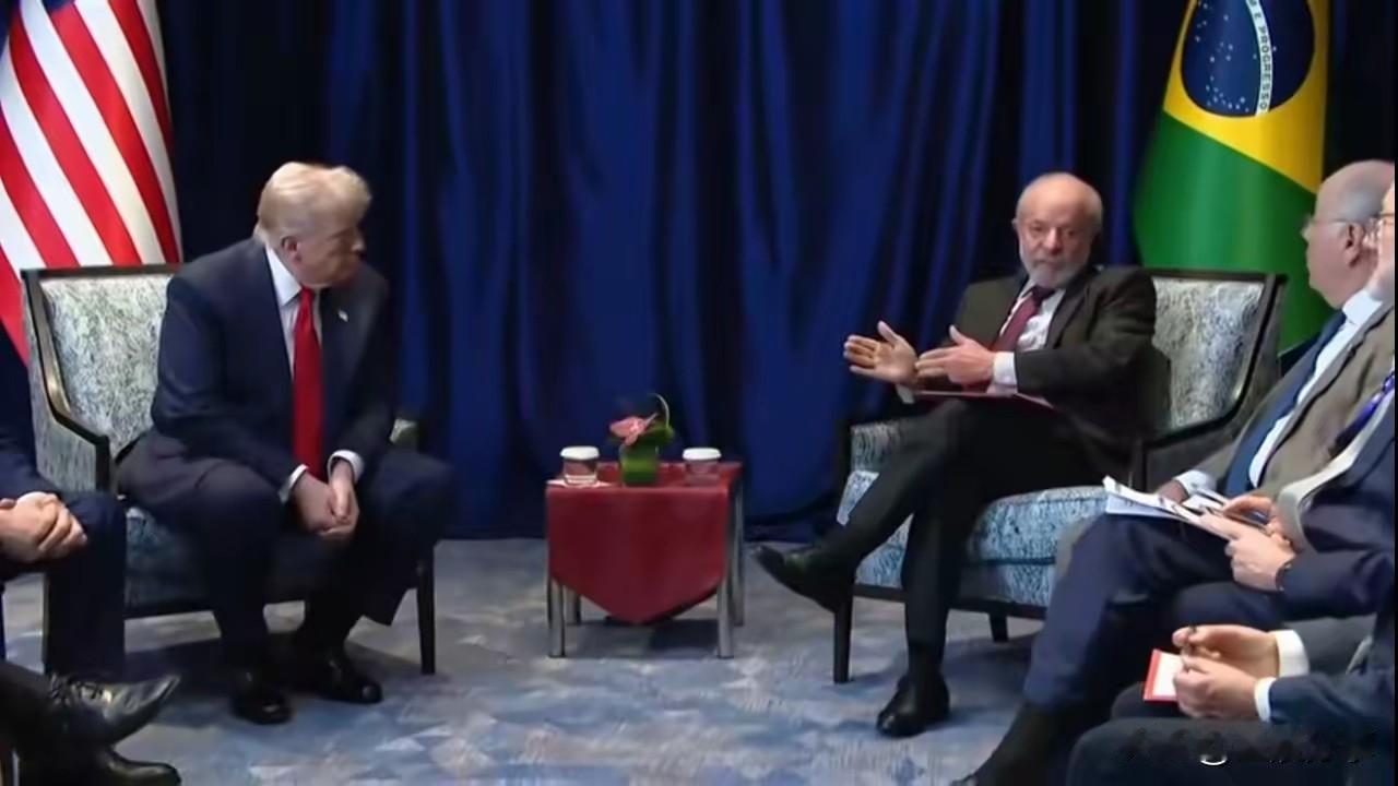 看特朗普这个坐姿,再看看巴西总统卢拉的二郎腿!给人感觉特朗普好紧张啊。身体前倾双