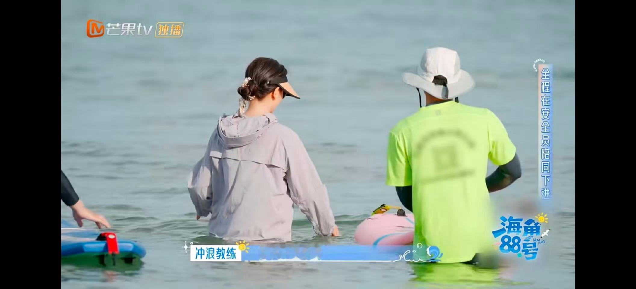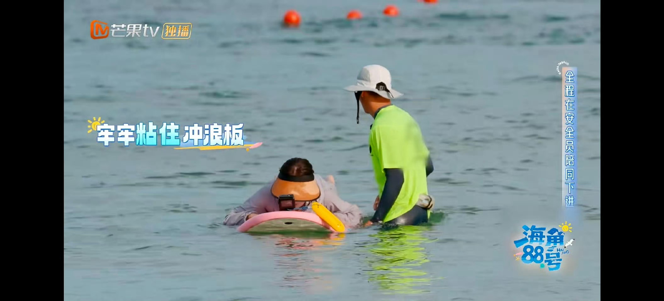 刘涛粘在了冲浪板上哈哈哈哈看得出涛姐很害怕了,在冲浪板上起不来完全是新手共性海角