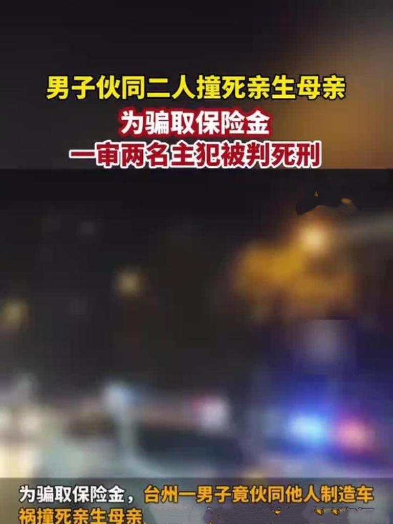 台州一男子为骗保,竟伙同他人撞死亲生母亲!2025年10月台州中院一审宣判,2名主犯被判死刑,1人获刑7年。此案突破人伦底线,你怎么看?