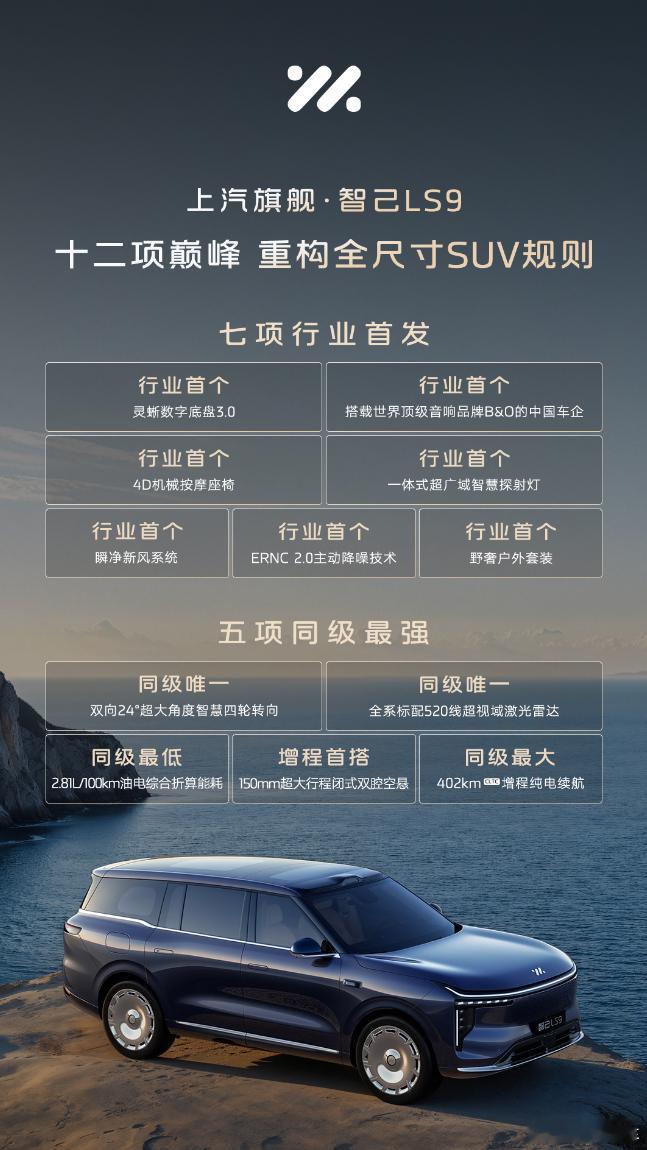 作为上汽集团旗舰力作,智己LS9携 “十二项巅峰科技” 震撼而来,一举重构全尺寸SUV新规则!
