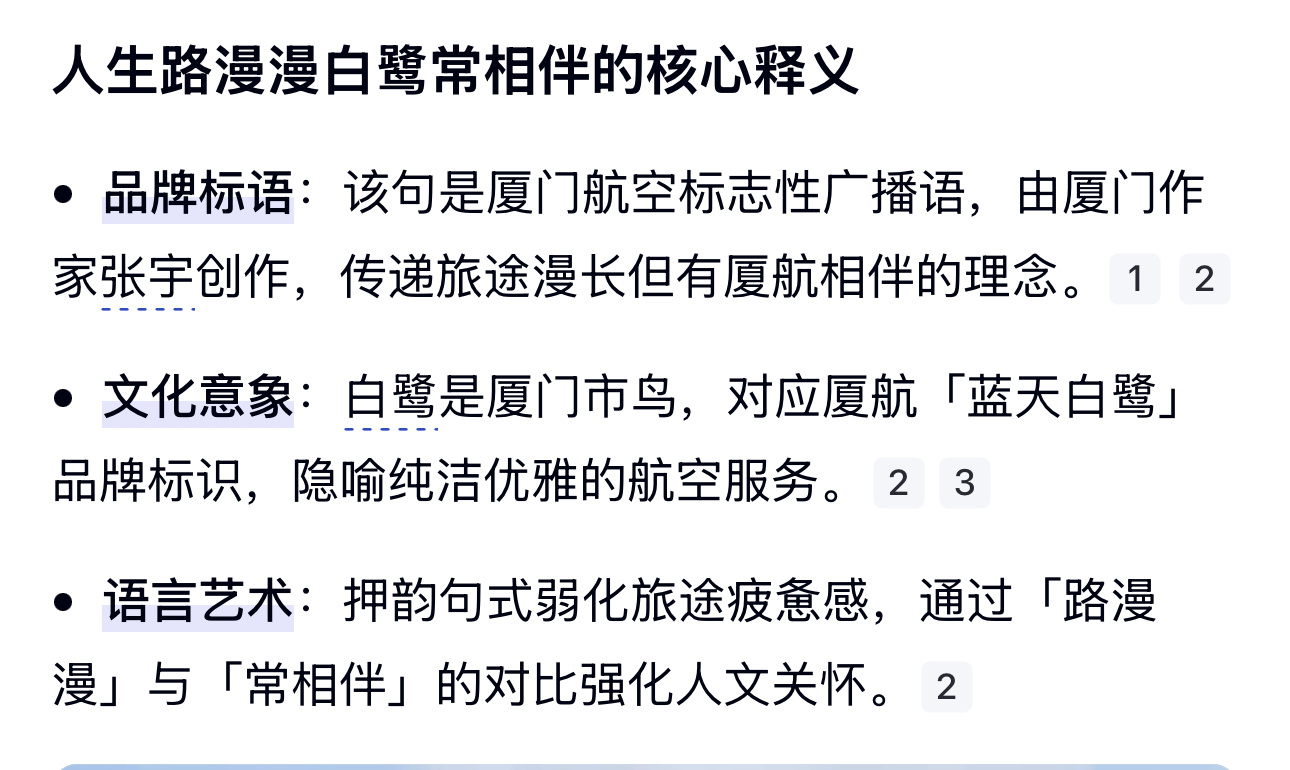 人生路漫漫,白鹭常相伴是厦门航空标志性广播语,传递旅途漫长但有厦航相伴的理念。