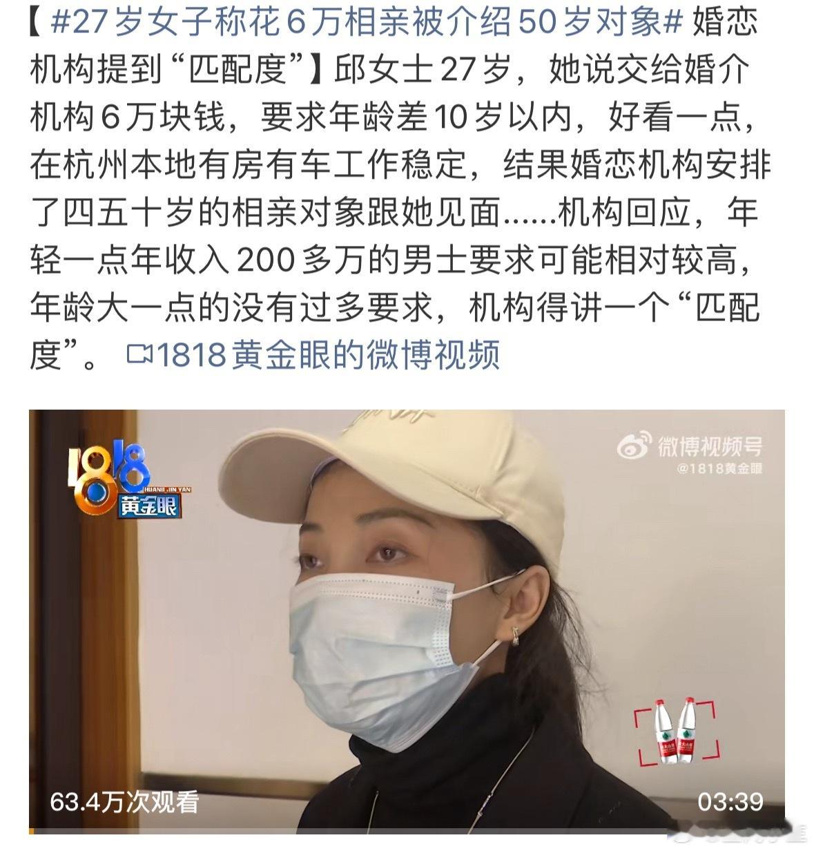 27岁女子称花6万相亲被介绍50岁对象这个相亲机构太离谱了,免费介绍的相亲对象都没这离谱吧,还不如找跳广场舞的大妈给介绍呢
