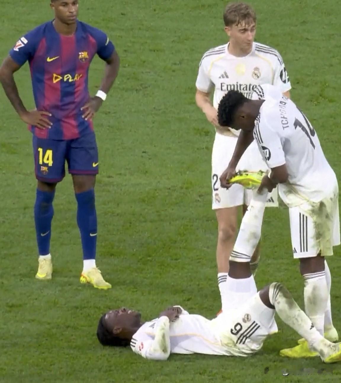 皇马巴萨赛后爆发大规模冲突。 北京时间昨晚23:15分, 西甲联赛迎来国家德比之战, 皇马在主场迎战巴萨队, 最终皇马2-1力擒巴萨队。 皇马和巴萨是西甲两支最强的球队, 从近10场两队交战的历史战绩来看, 皇马4胜1平5负,不相上下, 但近5场比赛皇马1平4负处于下风, 因此在主场战胜巴萨对皇马来说意义重大。 整体上来看, 本场比赛皇马表现比巴萨要好, 下半场姆巴佩还射失了一粒点球, 2:1的比分也在情理之中。 两队在赛后爆发大规模冲突, 最冲动的是两个最郁闷的人。 一个是皇马维尼修斯, 说实话本场比赛维尼修斯发挥出色, 虽然没有进球,但是给巴萨的球门制造了不小的威胁。 比赛进行到第73分钟时, 在比分领先的情况下, 主教练出于战术的考虑, 用罗德里戈将维尼修斯换下。 维尼修斯满脸疑惑,难以理解, 一时控制不了情绪, 心不甘情不愿的走向替补席, 一路上嘴里还不停的絮絮叨叨。 比赛结束后怒气难消的维尼修斯 与巴萨替补席的球员发生争执。 二是巴萨的亚马尔。 本场比赛亚马尔表现一般, 有点有劲使不出的感觉, 几次妙传队友也没有抓住机会。 而自己被皇马重点盯防, 原来带球突破内切射门的绝技, 也无法充分施展出来。 下半场后半段曾尝试着, 位置从右路转到中间, 效果也不是很明显。 他在场上比较急躁, 在最后时刻罗德里因为铲球收不住脚,被主教练出示第2张黄牌, 两黄变一红罚下之后, 年轻气盛的他一时也没有把握好自己的情绪, 赛后和巴萨的守门员发生了口角。 总的来说胜败乃兵家常事, 两支强队谁输谁赢都很正常, 赛后发生冲突完全没有必要!