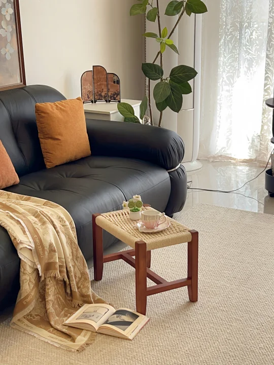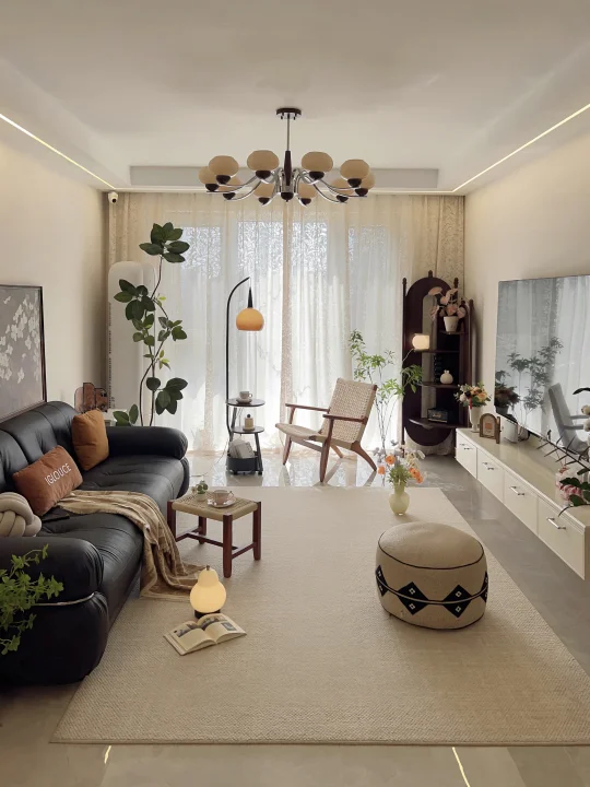 我家窗户望出去就能看到中国尊,所以阳台也精心布置了一番,藤编的中古凳好看还好打理,搭配自带的脚踏别提多安逸了