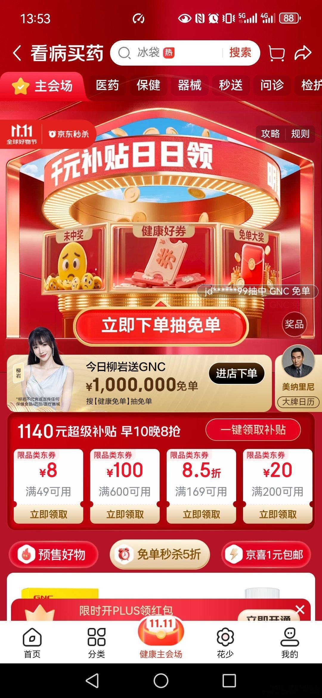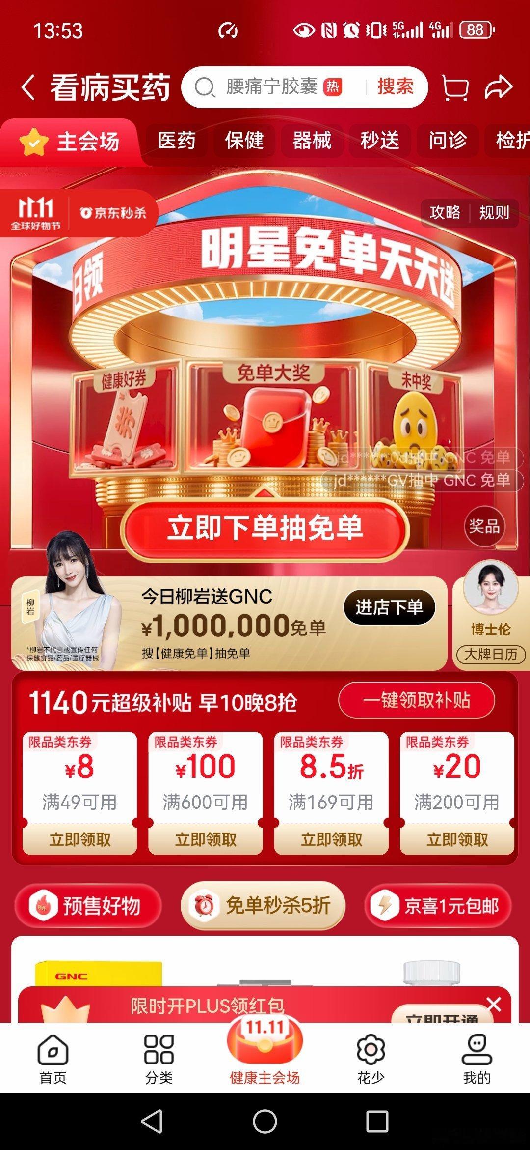 明星天天送免单京东买药11.11柳岩送百万免单 上京东,搜健康免单,双11福利,每日都有明星助阵,今日柳岩送福利。免单抽大奖,下单就可以抽奖。福利多多,一起参加吧,
