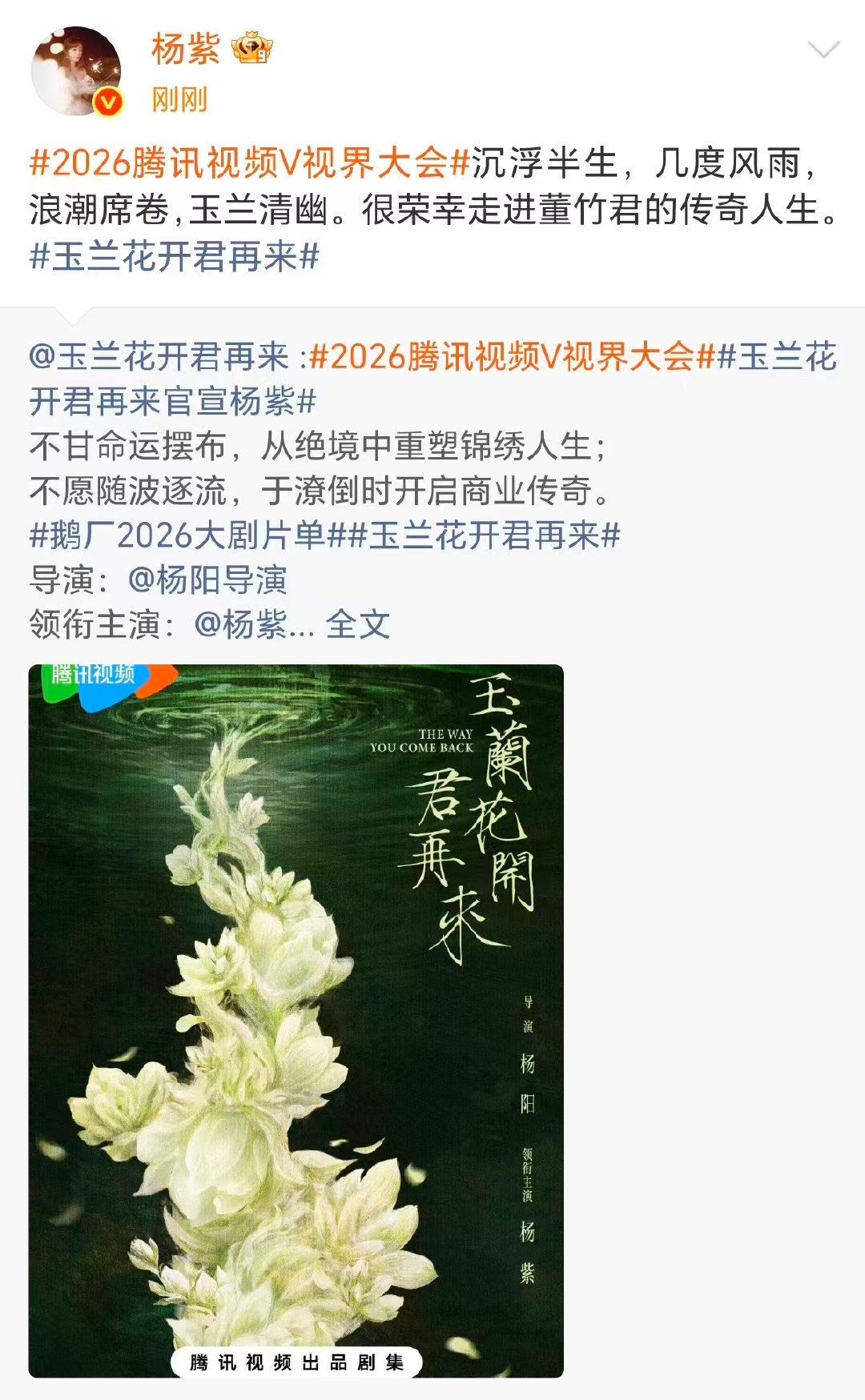 杨紫很荣幸走进董竹君的人生杨紫玉兰花开君再来官宣发文杨紫玉兰花开君再来官宣发