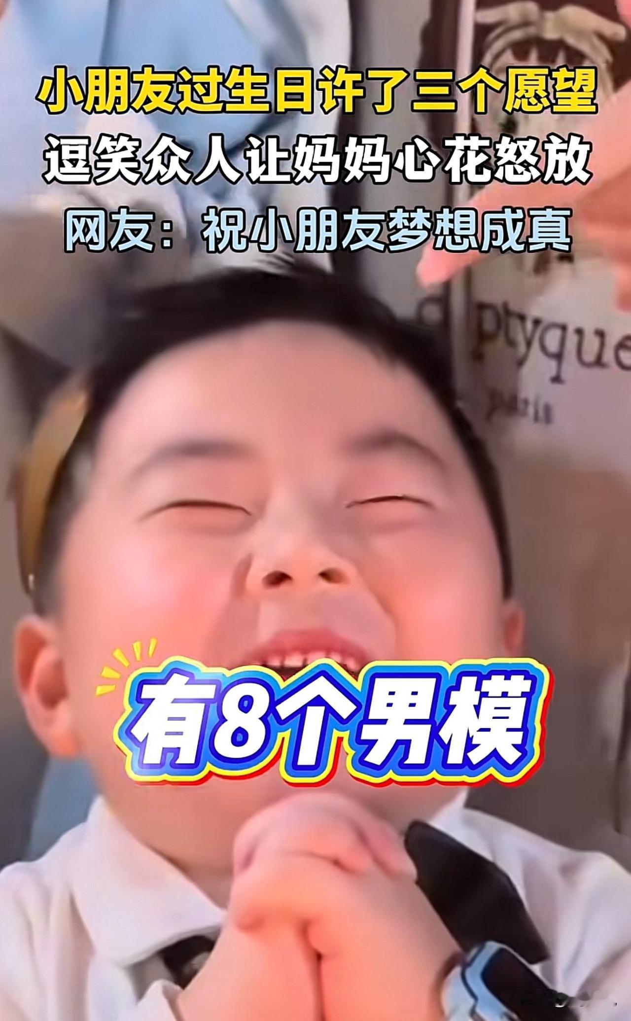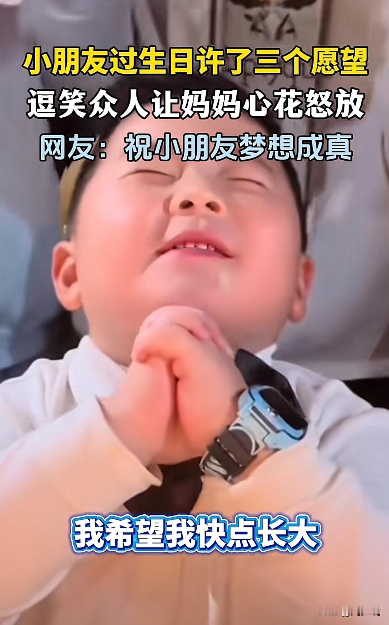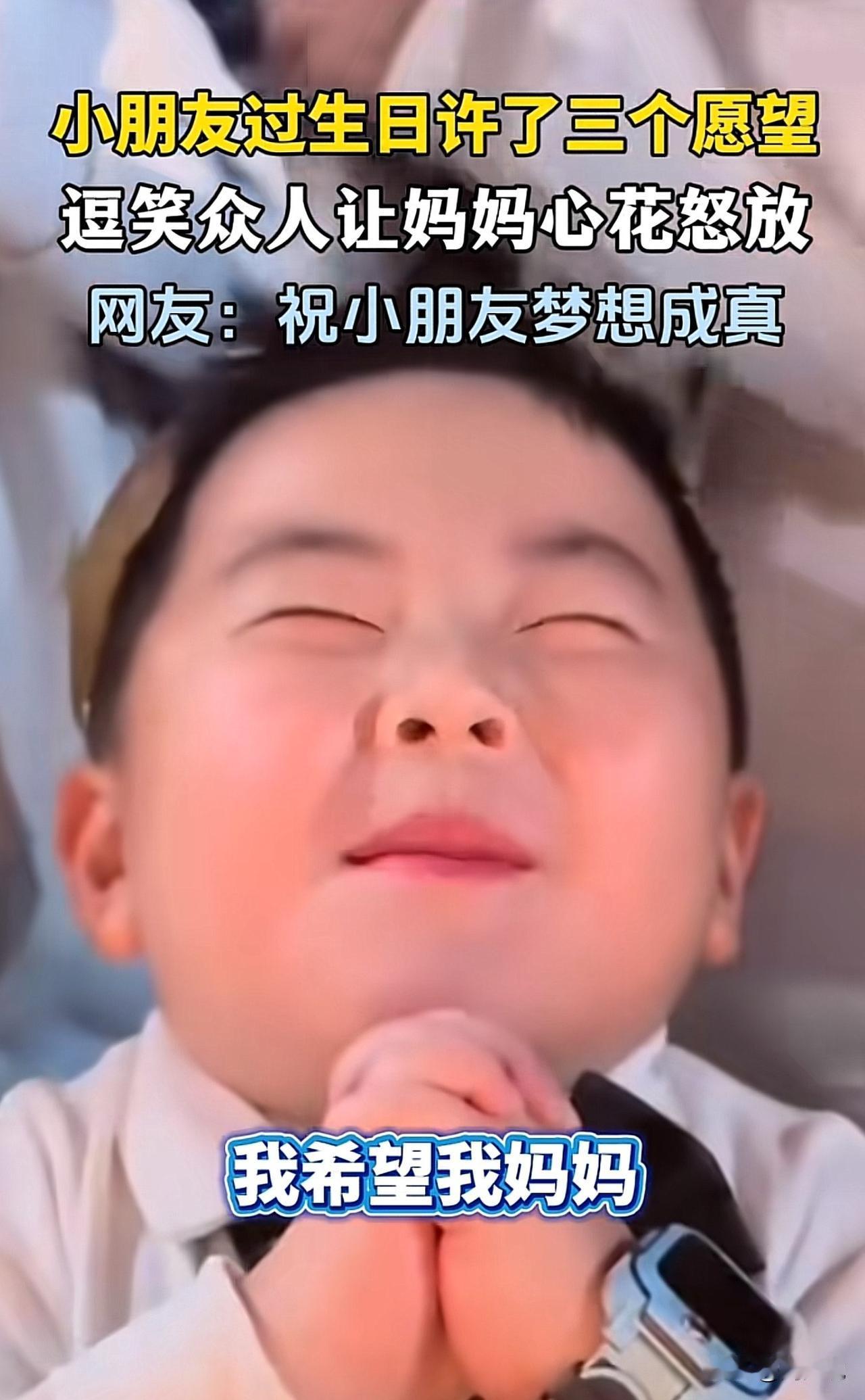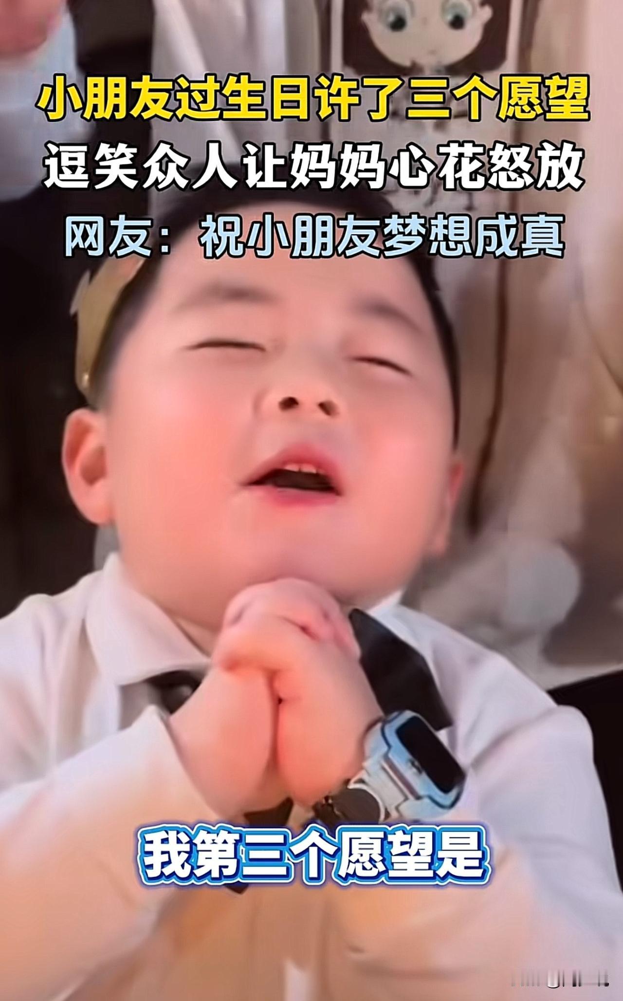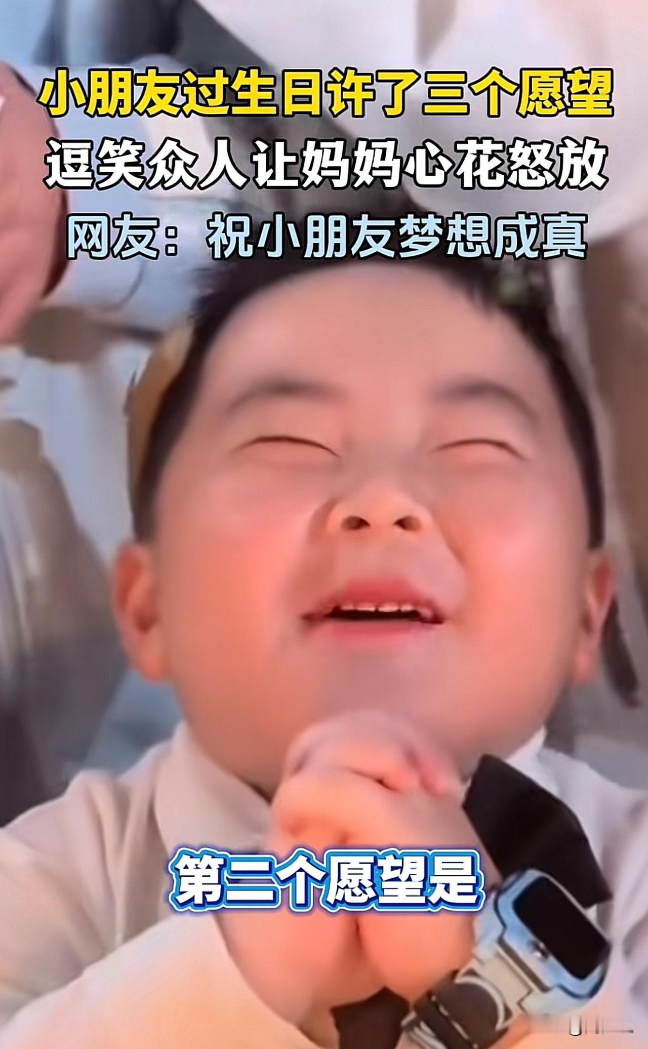 “真要被笑哭了!”安徽,一位小朋友过生日,许了三个愿望,这位小朋友说第一个愿望是祝愿全家人永远不老,永远不死;第二个愿望是希望我妈妈,有八个男模;第三个愿望是希望自己快点长大成大人,早日娶上张清禾。 此话一出,逗得在场的众人纷纷大笑,纷纷表示祝小朋友梦想成真。 看完之后,周少不得不说真要被这位小朋友笑哭了,简直太可爱了。 果然孩童的许愿从不藏着掖着,既有对家人的纯粹牵挂,又有被外界影响的天真脑洞。 这份毫无修饰的直白,恰恰是最动人的童趣,也难怪能戳中众人的笑点与萌点。 对于这位小朋友许的生日愿望,大家怎么看呢?#寻美三湘# #长沙新朋友#