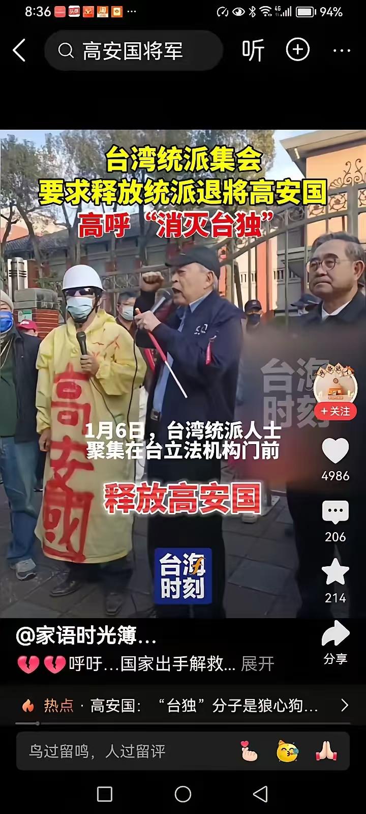 台湾“统派”集结,举行抗议,要求释放高安国将军!在近期,民进党当局对高安国将军等