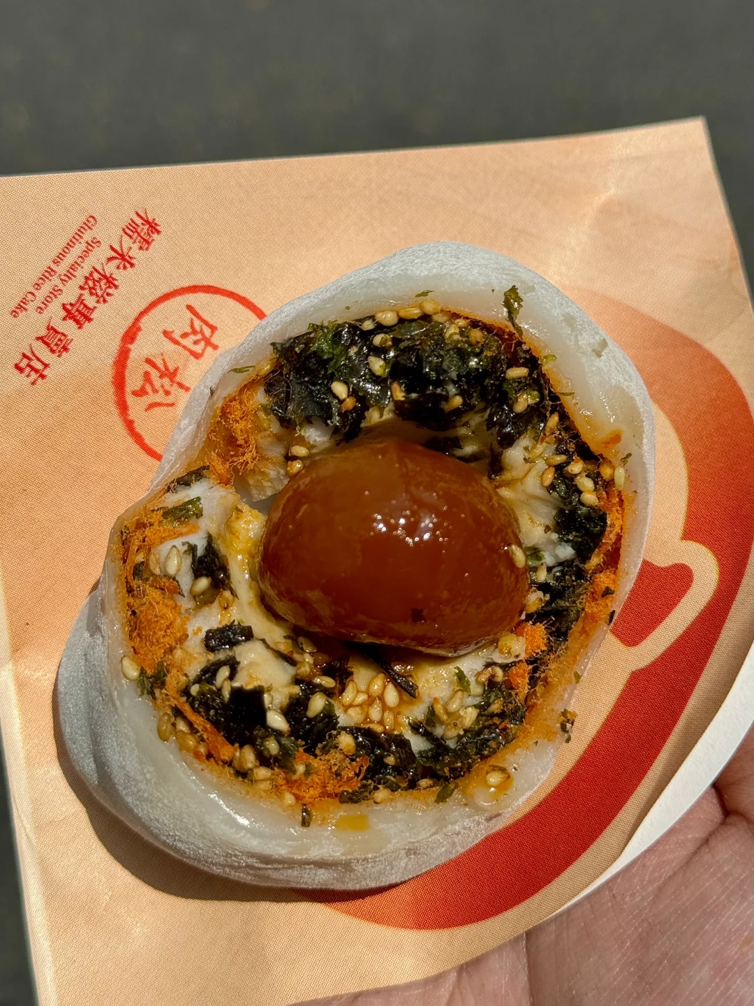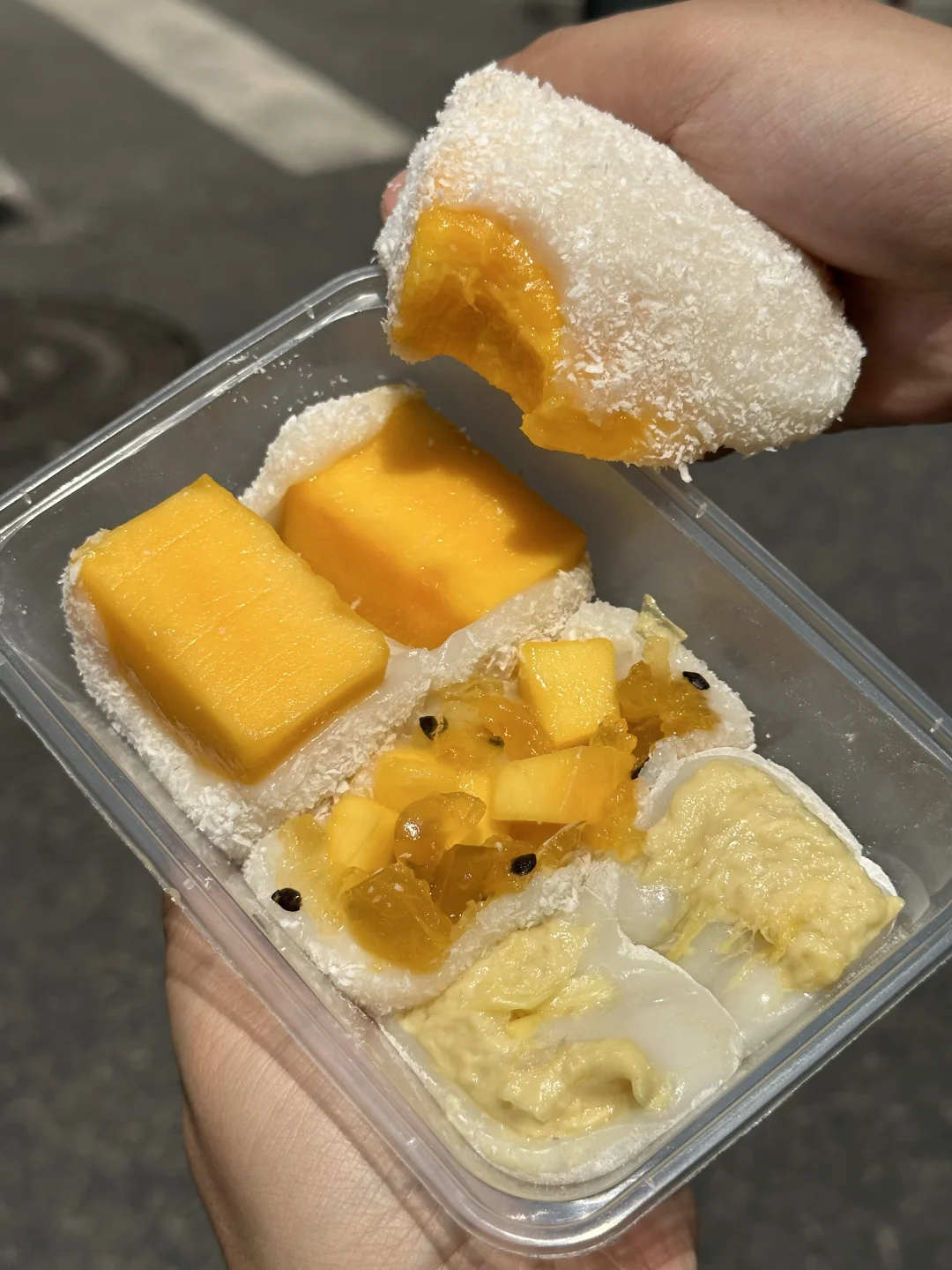 跟我之前吃的很不一样!皮真的很薄!! 芒果很大一块,啊啊啊还biu汁! 我心中Top3: 芒果、榴莲、芋泥咸蛋肉松海苔!!