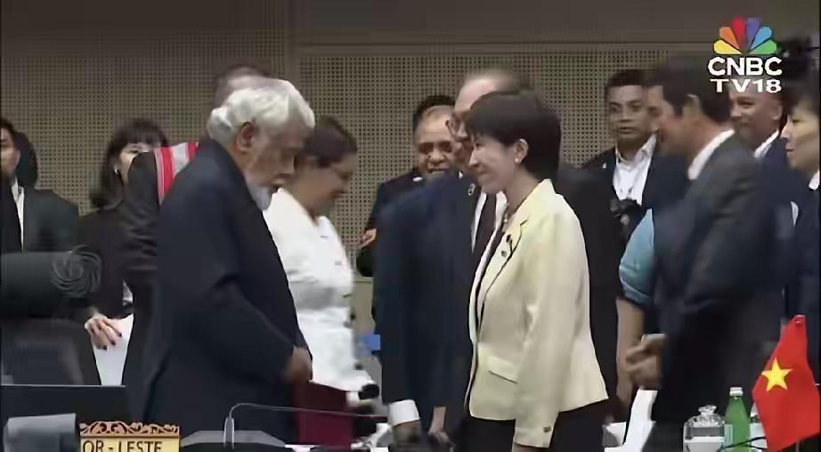 一帮老爷们玩坏一个老太婆 东亚峰会刚上任没几天的日本首相高市早田也受邀参加,她到了会场大吃一惊,现场来了一群老爷们,就她一个婆子。她胆战心惊的蹑手蹑脚的走着,这时全场的老爷们都围了过来,估计都没见过美女吧。 一个白胡子老头情不自禁的走向前自我介绍,你好美女!我是非常帅的帅哥,希望交个朋友! 对面的美女上下打量了这个白胡子老头,眼睛停留在他的肚子上面,白胡子老头看了看自己衣服发现扣子扣错了,自己慌忙的把扣子解开重扣。现场围观的人哈哈大笑。 白胡子老头主动张开双臂来吧美女,抱一个,把美女拥入怀中,并在美女耳朵旁轻声细语说了句你真美!抱完还不过瘾,又用鼻子闻了闻美女的玉手,令围观男士羡慕不已,而后他们又手拉手一起做游戏。