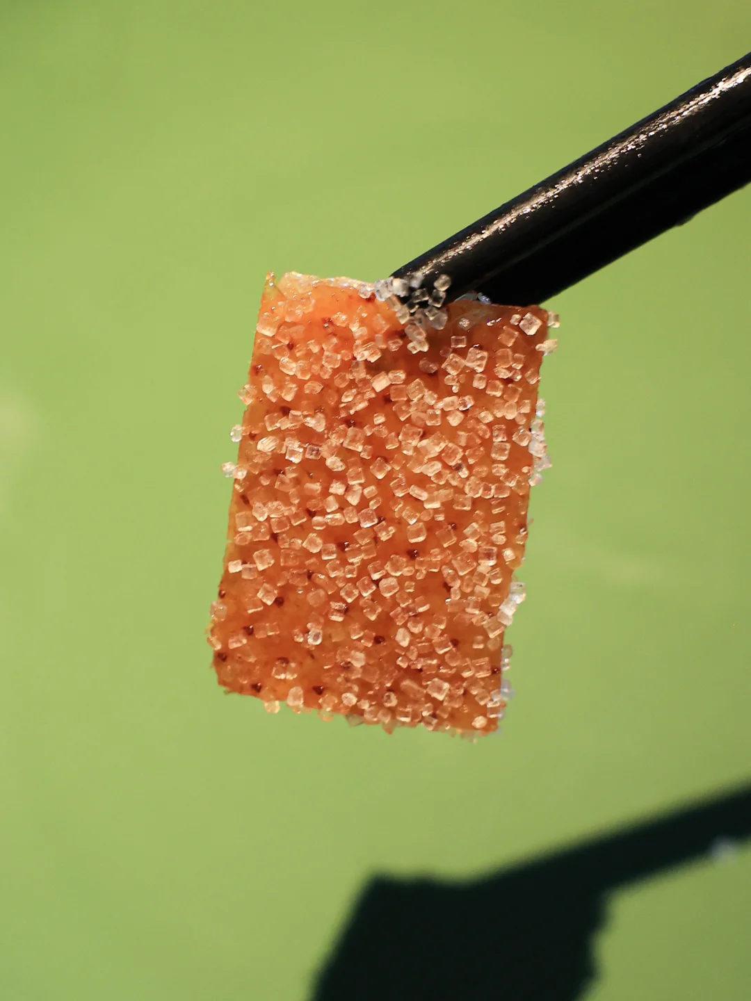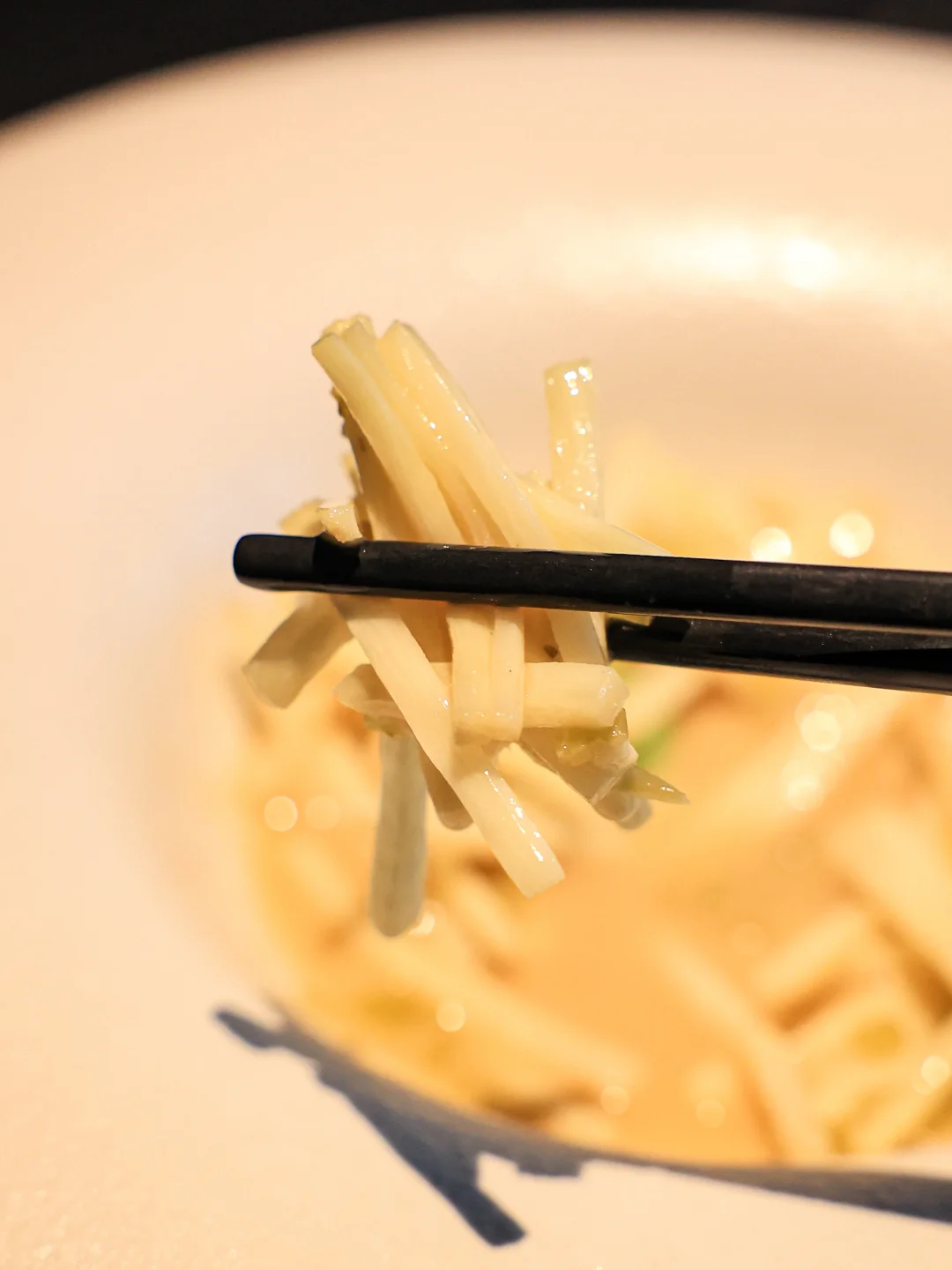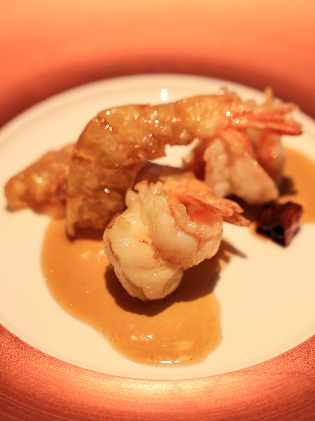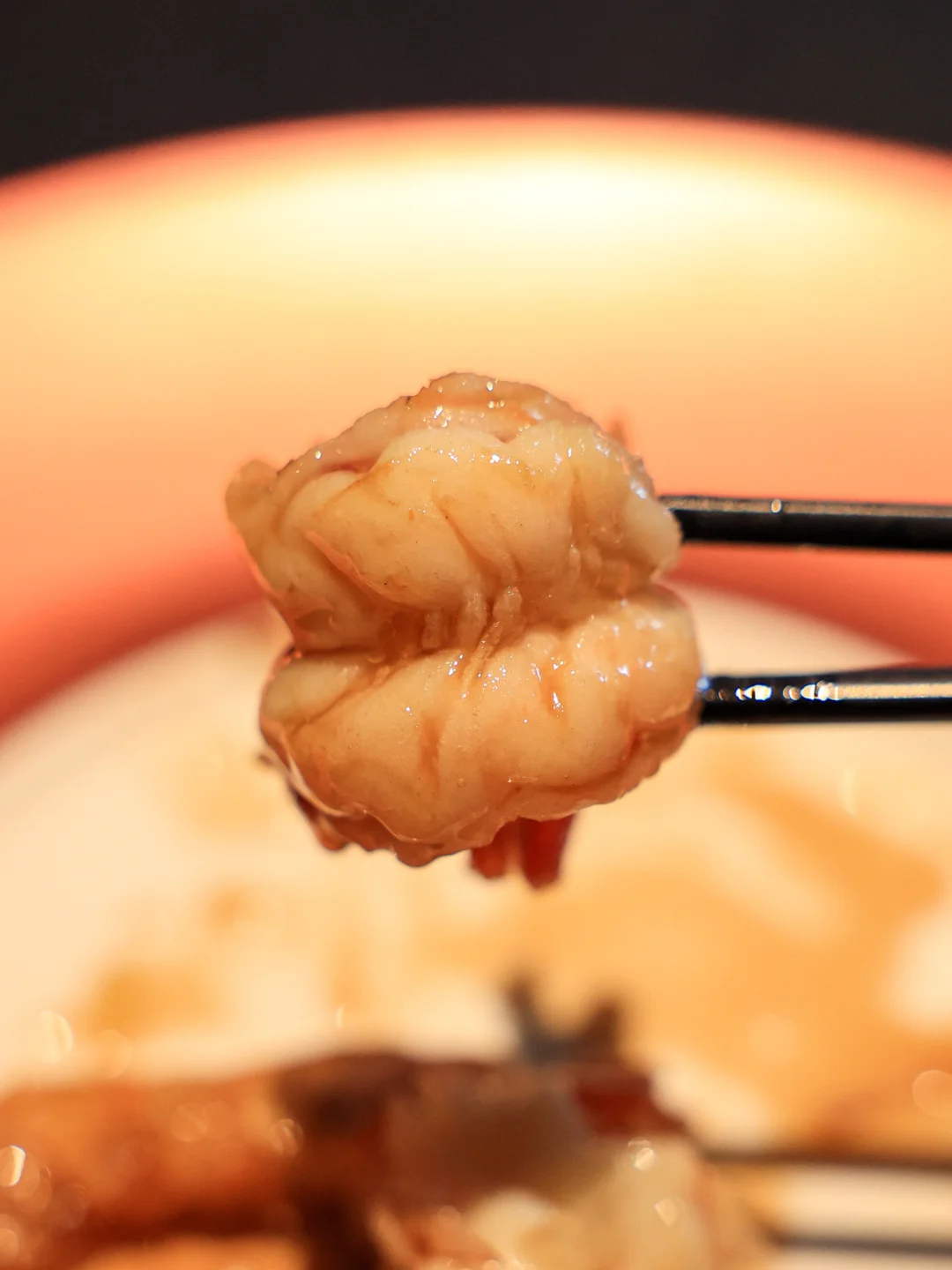 吃完虾壳再去吃虾肉,酸味不太冲的酱,反而能把饱满虾球的甜给带出来,两块刚好,再多就腻了。