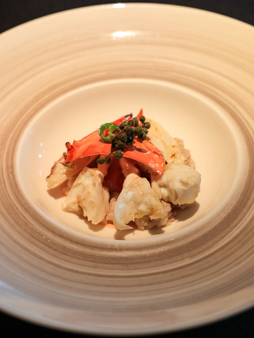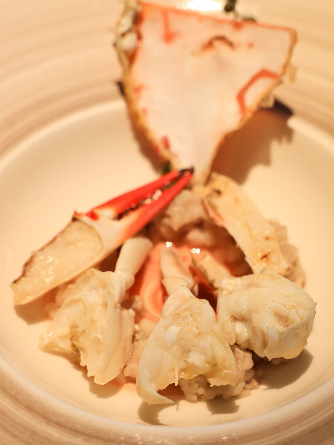 螃蟹底下的肉饼相当好吃,肥瘦比例得当,蒸出来的汁水与肉饼里的油润感组合得很棒。而蟹肉靠着食材的新鲜,属于不会出错的好吃,甜味之余则会涌现出一点花椒的麻味。