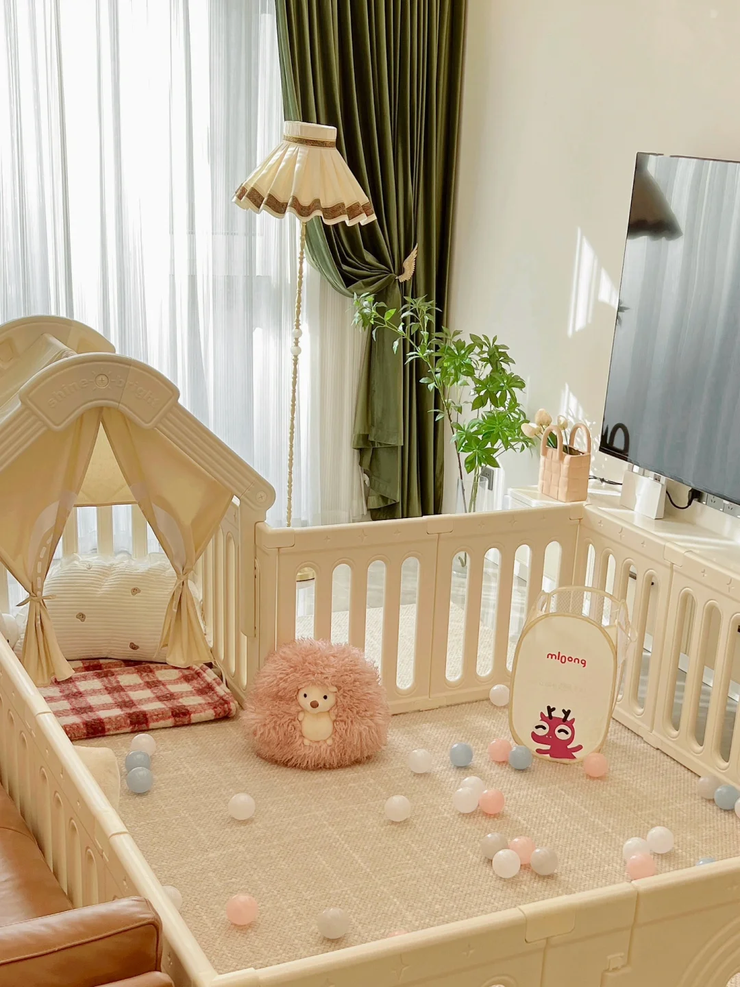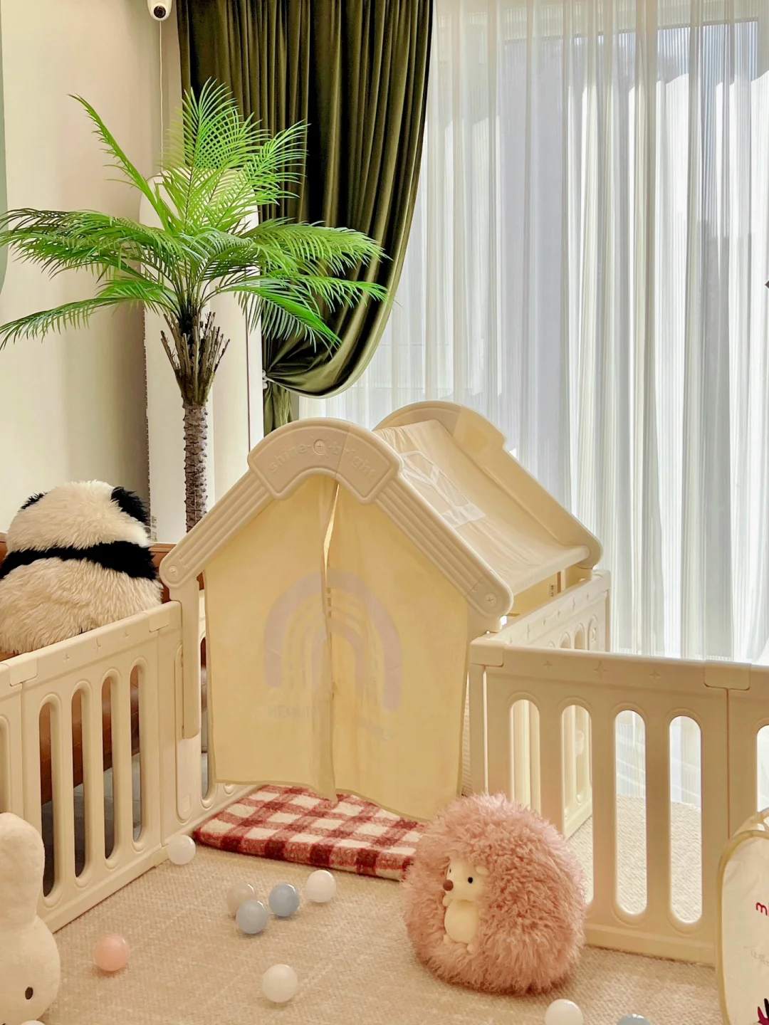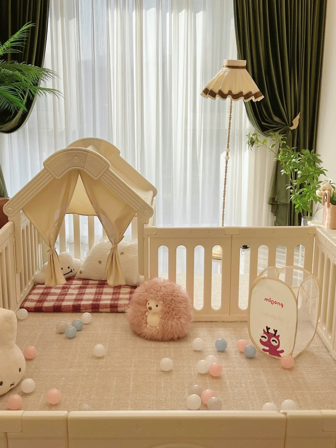 想到之前老看有人在客厅放游戏围栏🎯,再搭配一个小帐篷,就觉得一定是小孩子美好的童年记忆