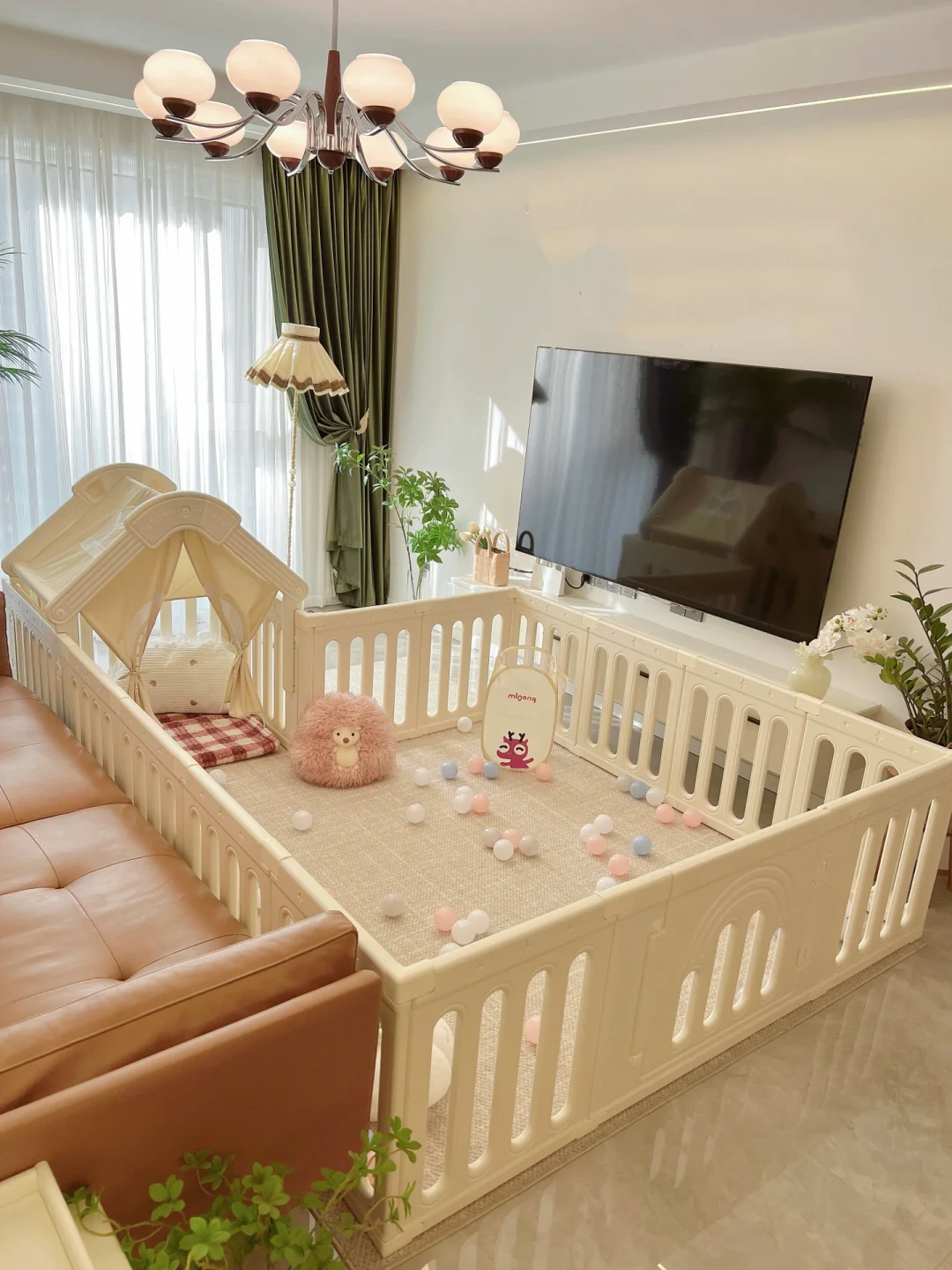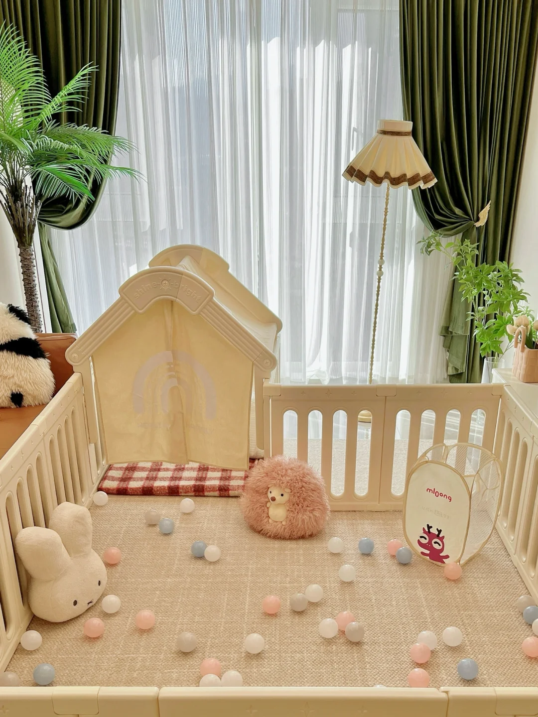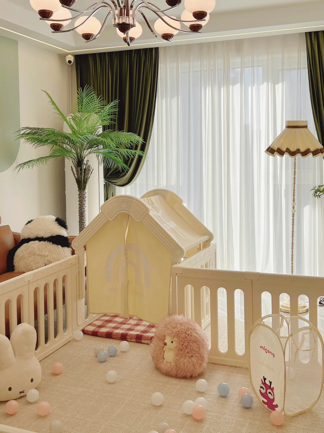 想到之前老看有人在客厅放游戏围栏🎯,再搭配一个小帐篷,就觉得一定是小孩子美好的童年记忆