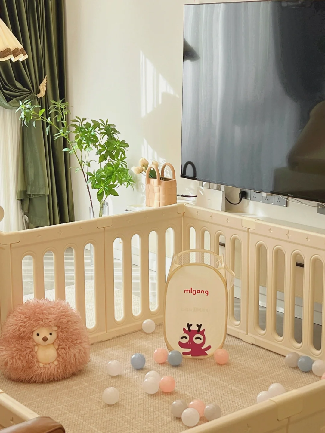 把所有的玩具和宝贝🎨都放到围栏里,是孩子自己充满安全感的小小城堡🏡