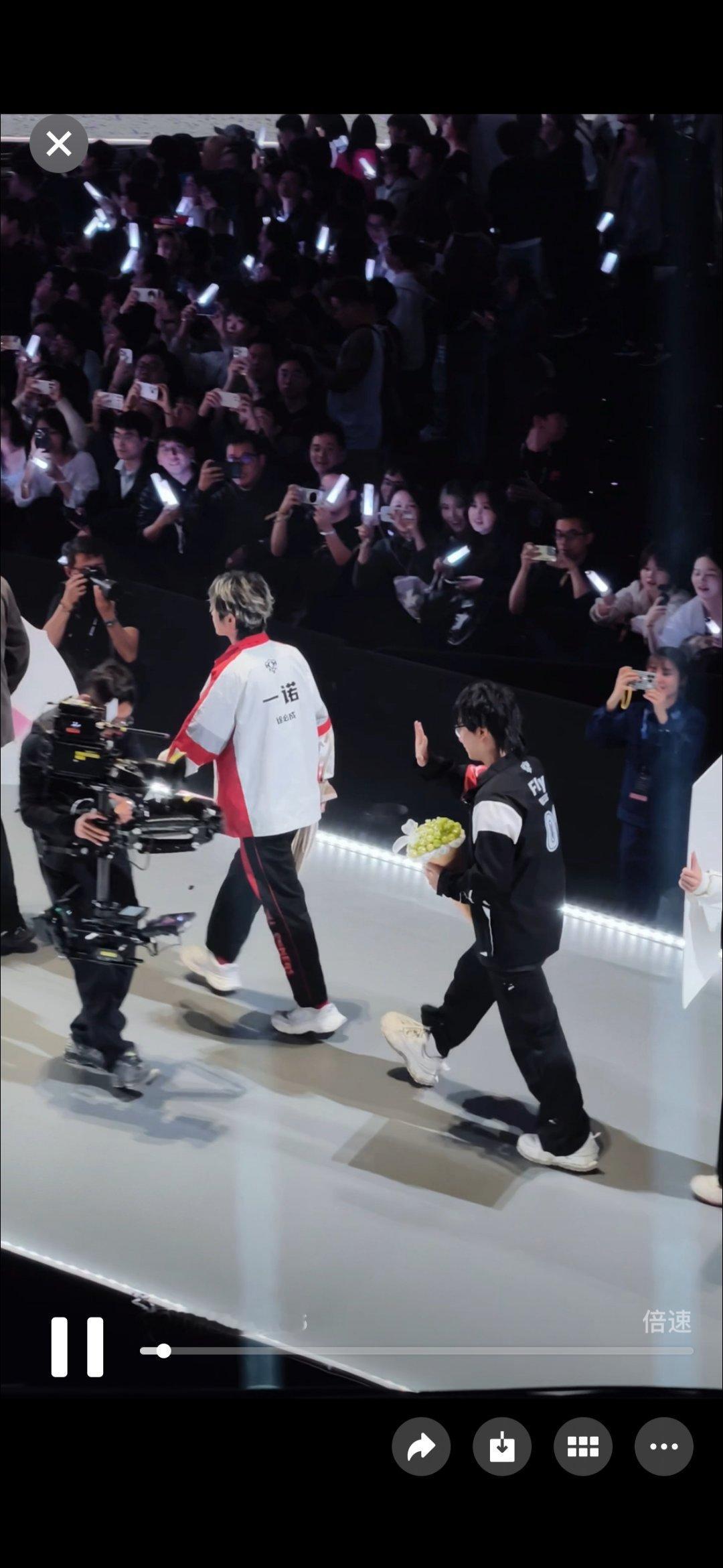 昨天梦之队登场时,fly拿的是阳光玫瑰...