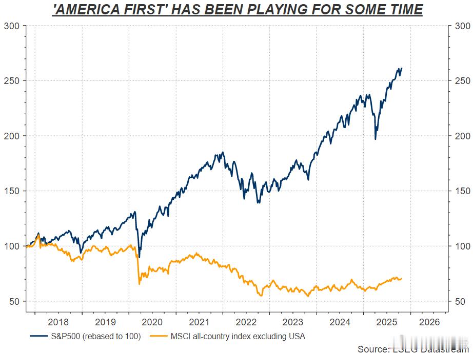 今年春季关税争端中的一个主要问题是,美国作为跨境投资首选地的卓越表现是否受到了损害。人们担心,持有昂贵美国资产的外国投资者可能会撤资,将投资转移到其他地方进行多元化。