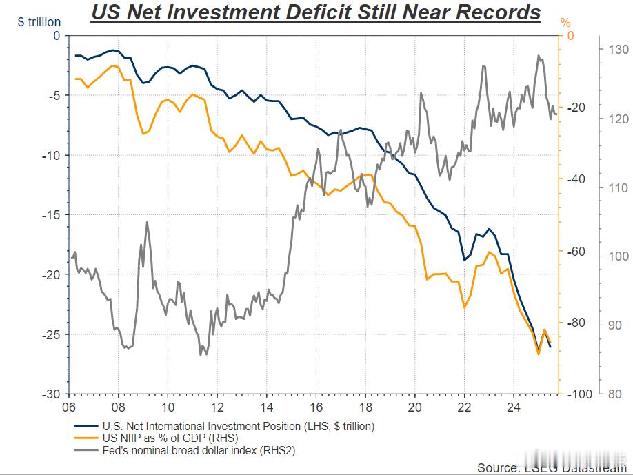 摩根大通最近推出的1.5万亿美元“美国优先”贷款计划,为期10年,凸显了其更广泛推动的规模。这也体现了特朗普团队的信念:美国国内资本和投资能够弥补任何外国资金的流出,而如果要缩小巨大的经常账户和资本账户失衡,就必须实现外国资金的流出。