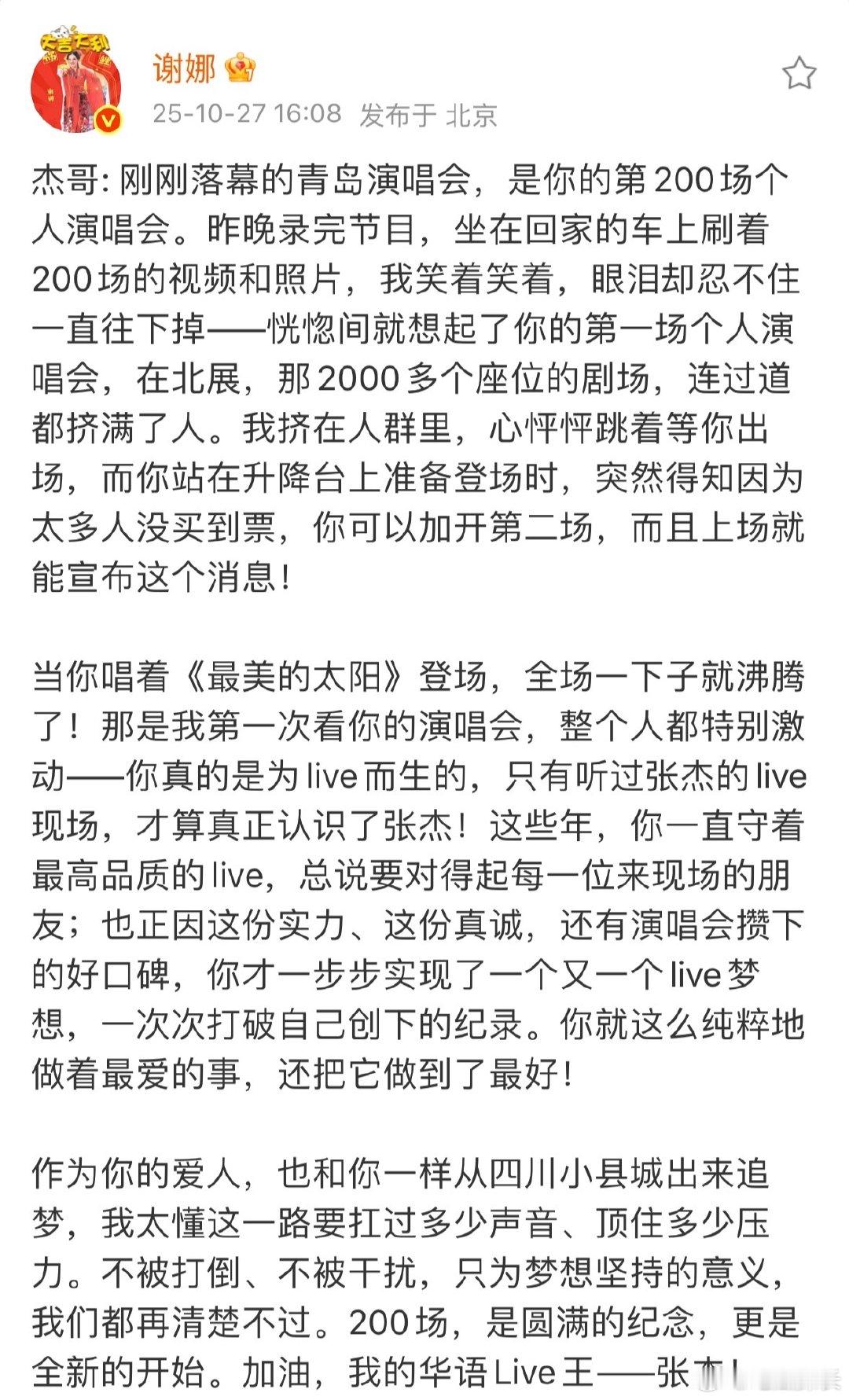 谢娜说加油我的华语Live王张杰谢娜看张杰第200场个人演唱会后发文谁看了谢娜写张杰第200场演唱会的文字不感慨?从《最美的太阳》登场到现在打破无数纪录,他的live舞台永远值得期待!