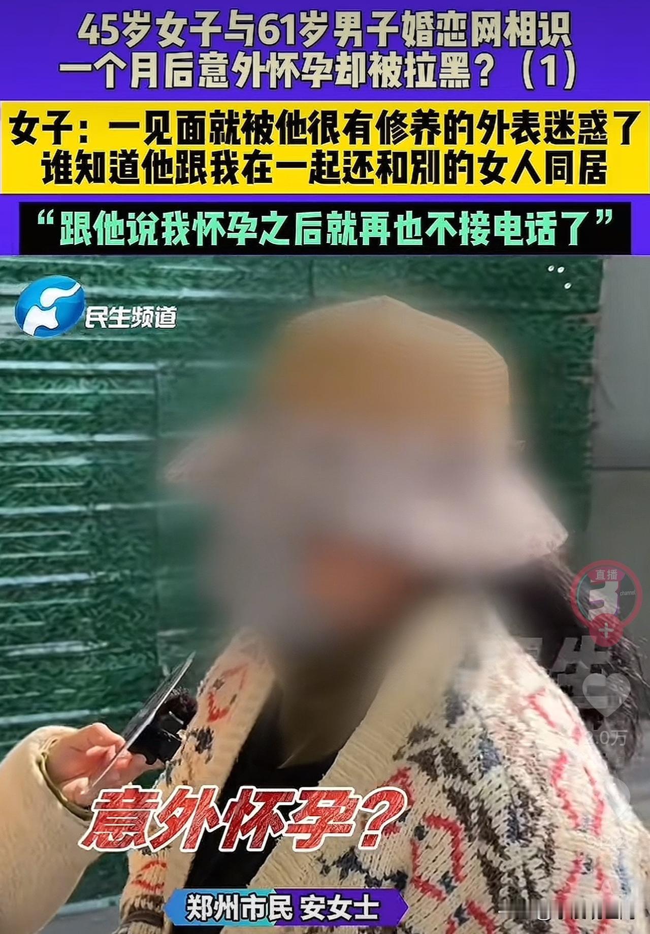 【郑州热闻】45岁大姐与61岁大爷相识仅一个月,竟意外宣告怀孕!随后大爷疑似“逃避责任”,直接拉黑失联。大姐无奈之下带记者上门讨说法,大爷面对镜头一脸无奈:“我唯一的错,就是她主动的时候,我没拒绝……”[捂脸] 网友热议炸锅: · “建议大爷先别急着认,是不是自己的还不一定呢,亲子鉴定必须安排!” · “45岁还能自然怀孕?是我知识浅薄了……两位都是能人,不服不行!” · “本想找个老实人养老,结果反被‘画饼’?大爷不愧是大爷,套路不分年龄!” · “渣男果然不分年代!本以为捡个大叔靠谱,谁想到大爷玩得更花……” 💡一句点评道破真相:“你以为是段夕阳恋,结果人家上演‘意外人生’!”这剧情,编剧都不敢这么写……