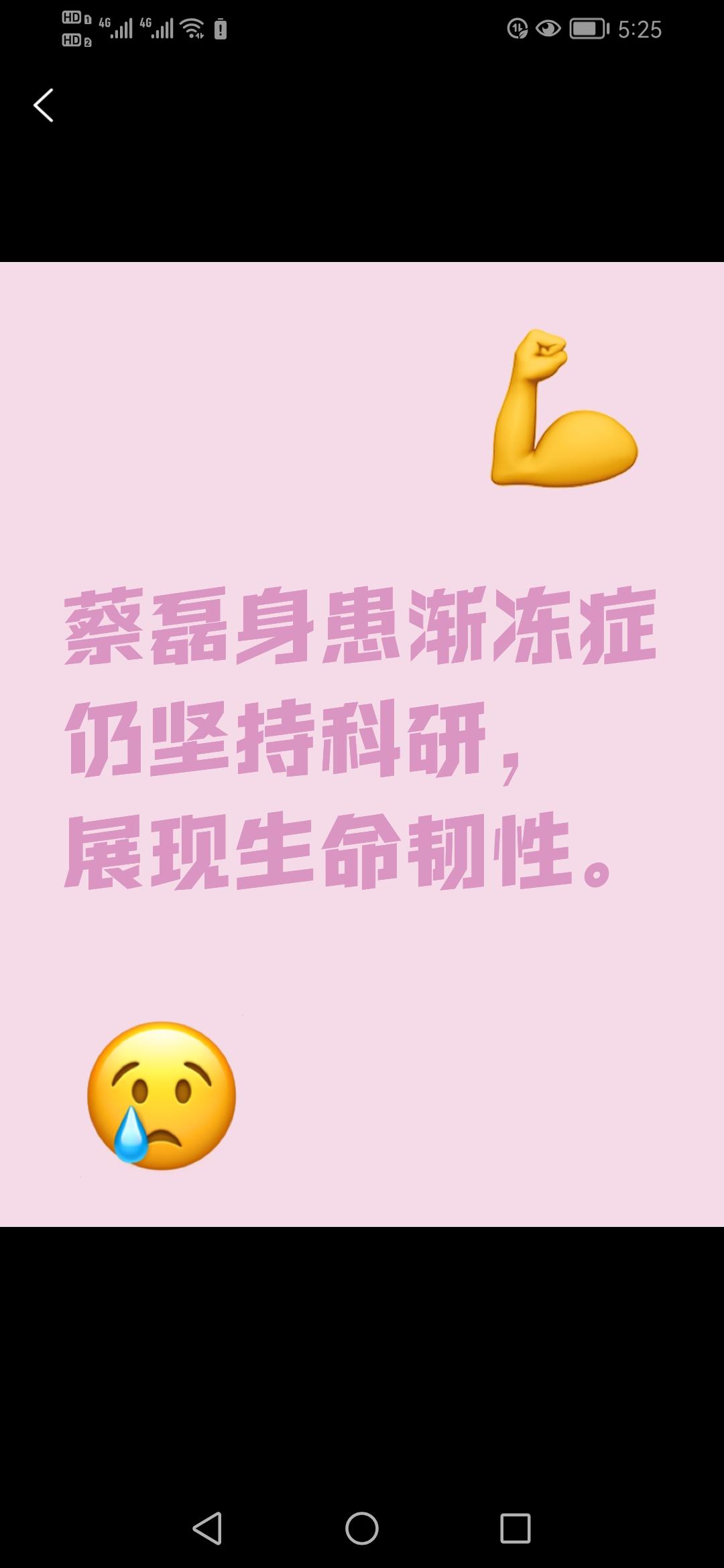 京东前副总裁蔡磊身陷渐冻症晚期,全身仅余眼球能动,生命宛如悬丝,科研之路艰难险阻。 渐冻症,一种让人绝望的疾病,夺走了许多人的行动能力,甚至语言和吞咽功能。如今,京东前副总裁蔡磊也陷入了这一绝境,全身仅余眼球能动,连起身都需要三人协助,喝水时必须加增稠剂并通过针管缓缓注入,稍有不慎便可能因一口痰窒息。尽管自身饱受折磨,蔡磊依然坚持科研工作,每天从早8点工作至深夜12点,通过眼动仪继续推动渐冻症药物的研发。这种坚韧不拔的精神,不仅是对科学的执着追求,更是对生命的顽强抗争。他的故事激励着无数病友与家人,共同面对这场没有硝烟的战争。