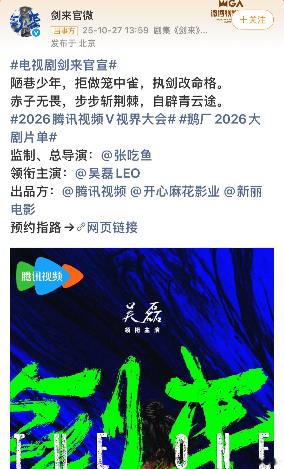 剑来官宣吴磊剧版《剑来》官宣男主,那就是吴磊,