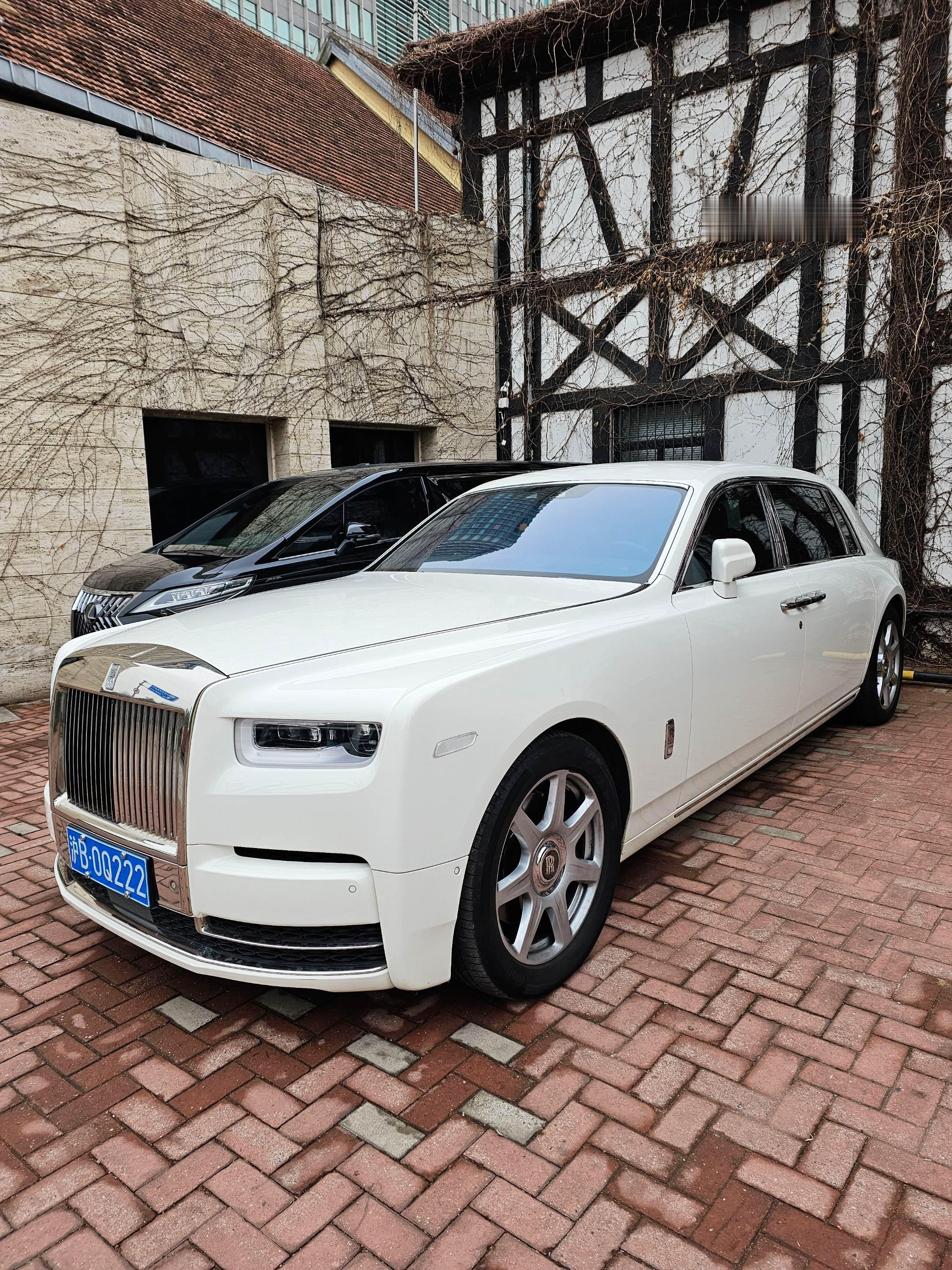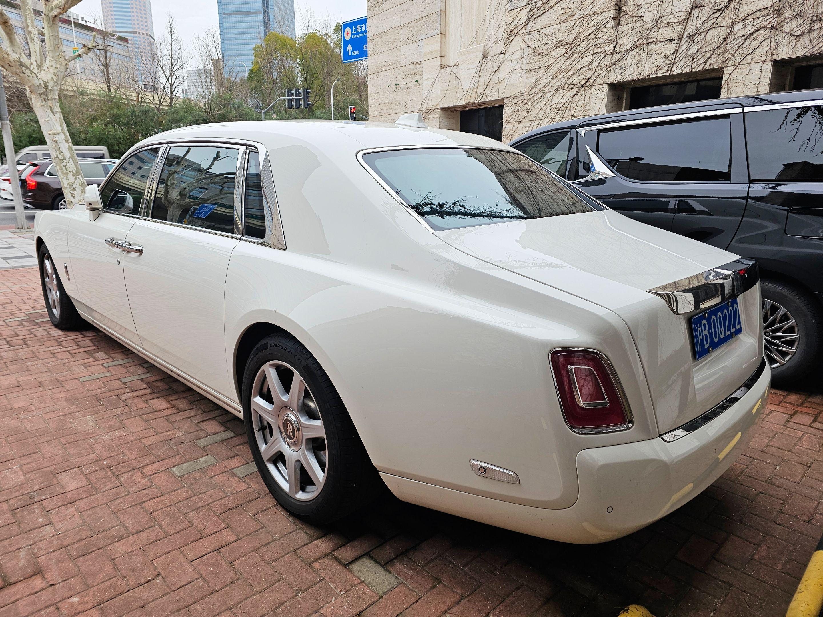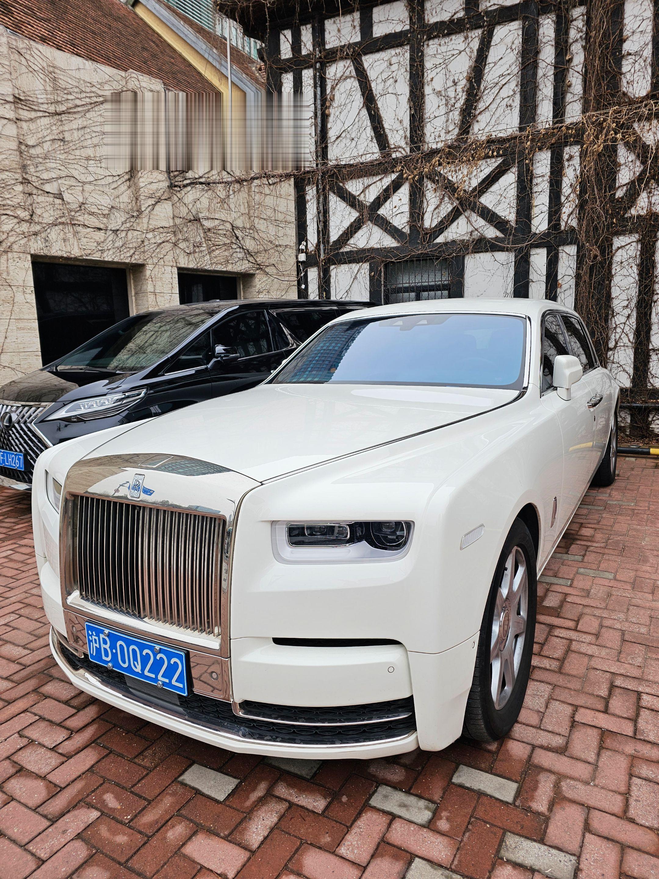 上海陆家嘴偶遇神秘大佬座驾劳斯莱斯幻影加长版,白色双拼色的外观配上22...