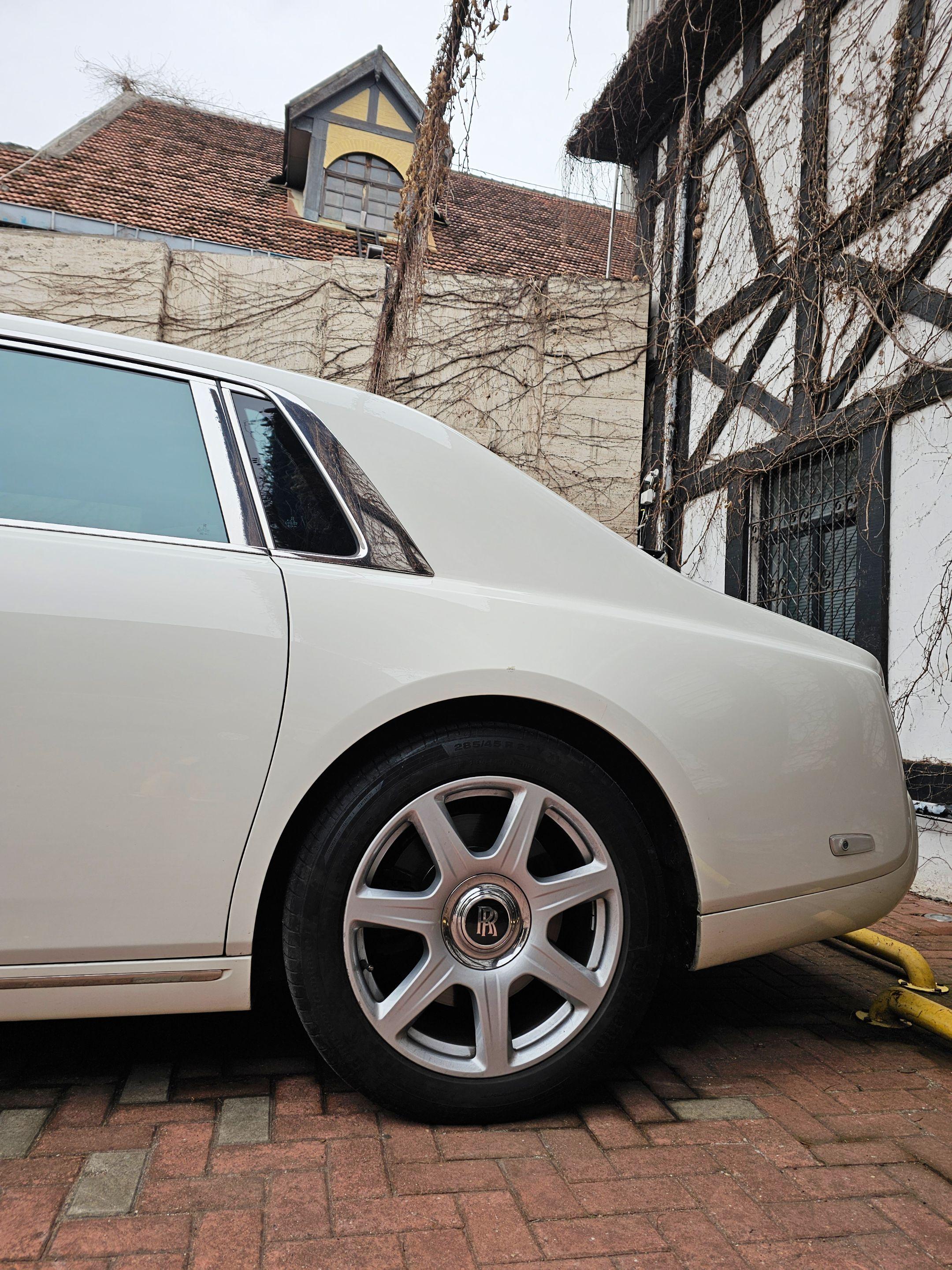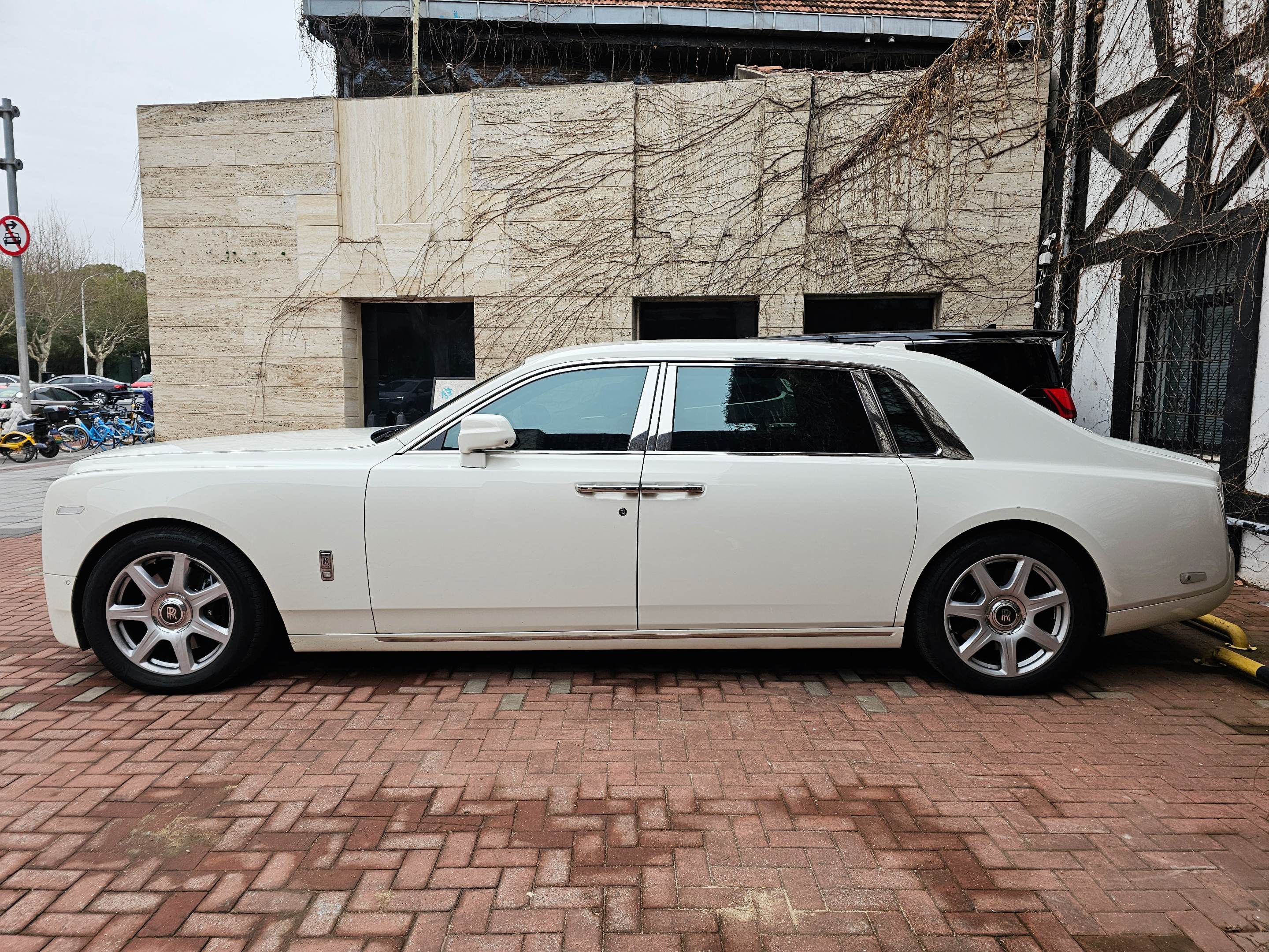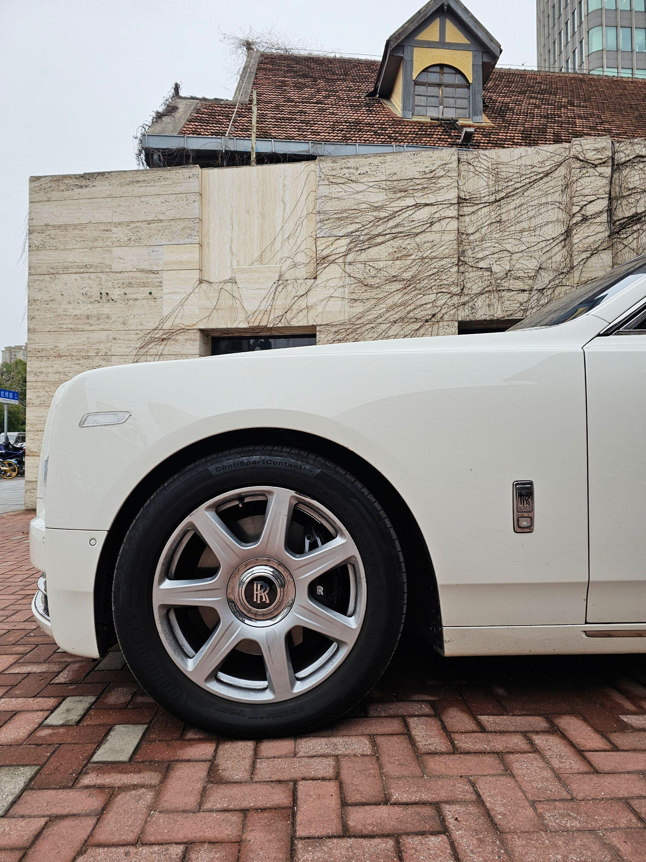 上海陆家嘴偶遇神秘大佬座驾劳斯莱斯幻影加长版,白色双拼色的外观配上22...