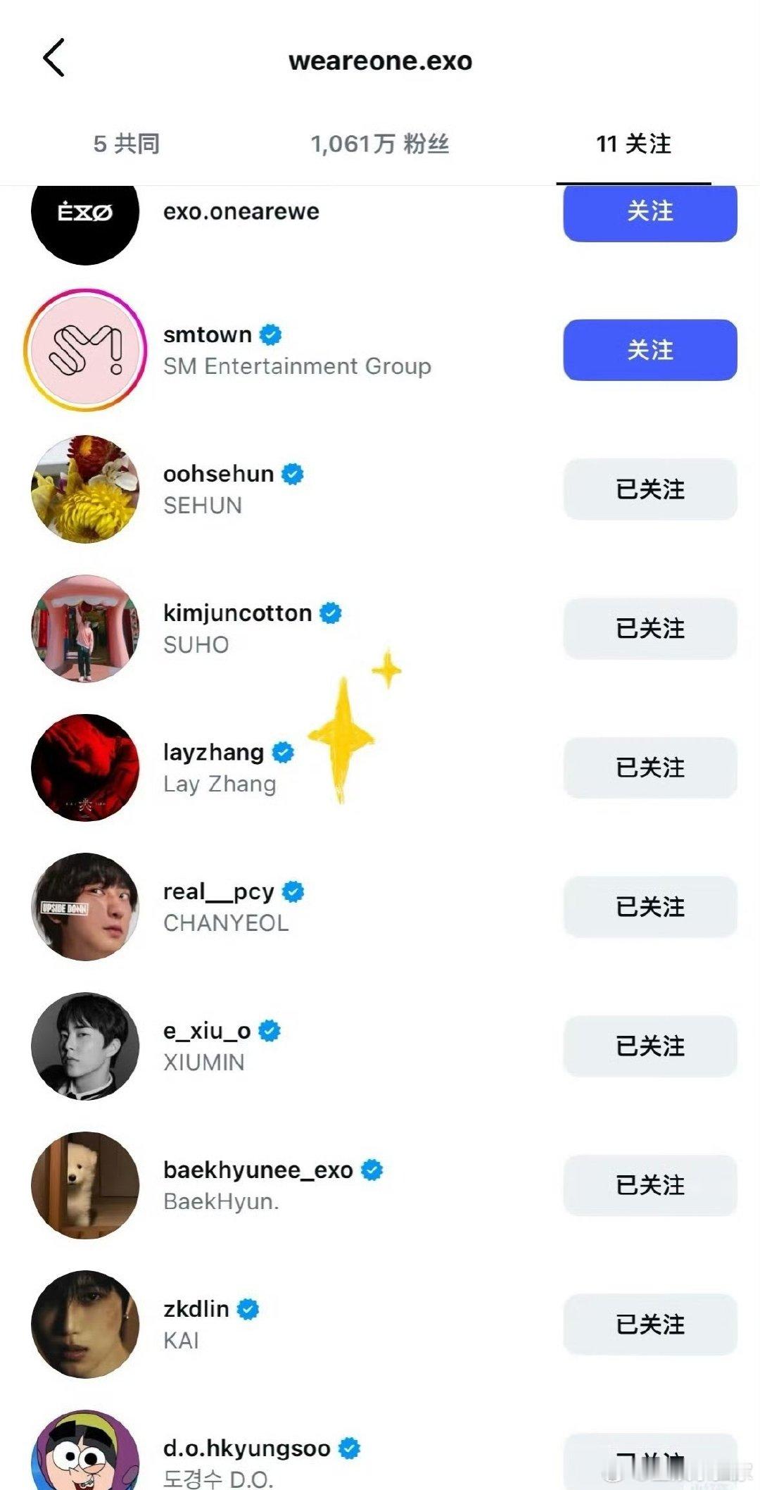 EXO官方关注张艺兴insEXO关注张艺兴ins了 官方账号是懂粉丝的!知道大家等回归消息,直接用关注列表给出最明确的回应。 EXO六名成员参与回归