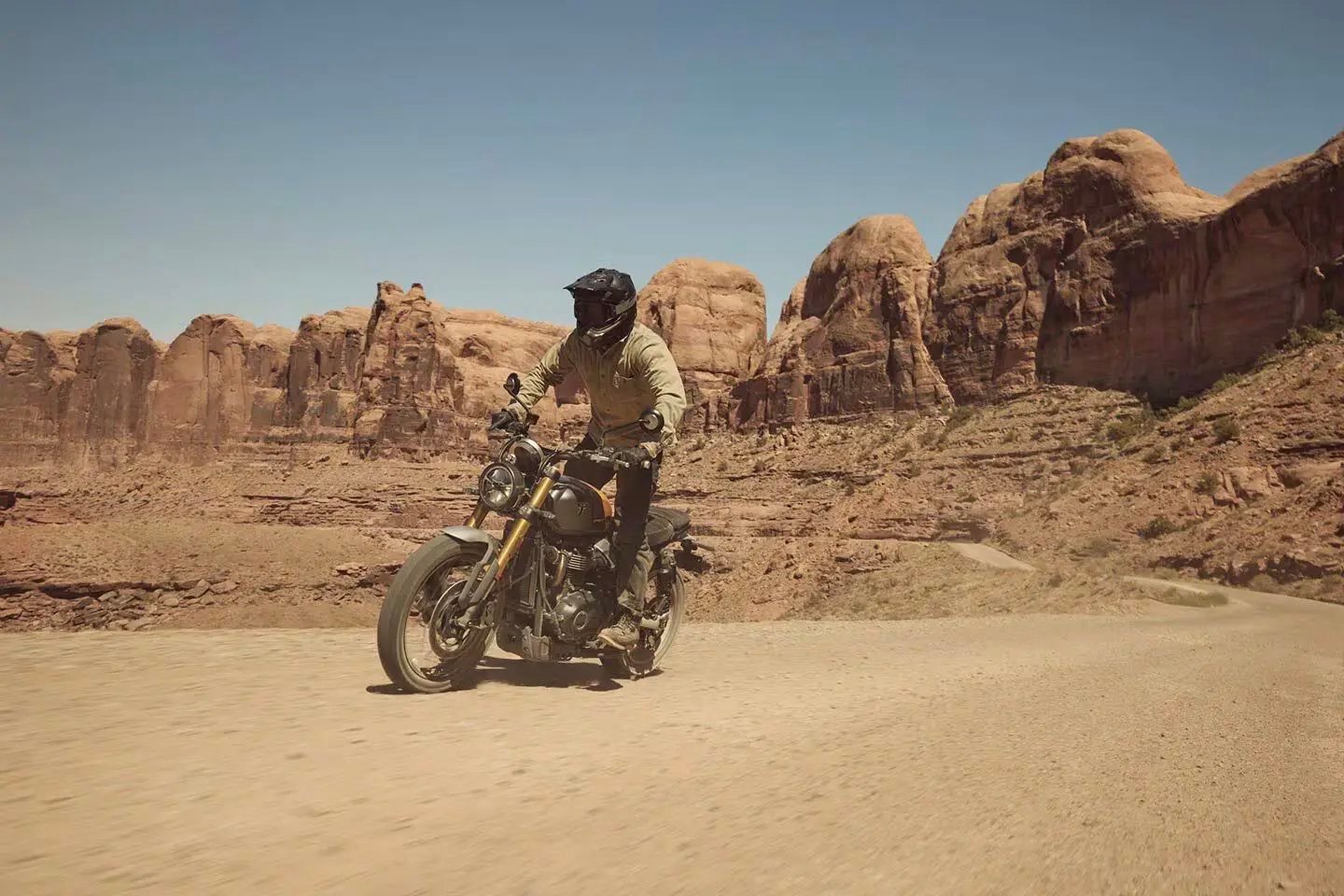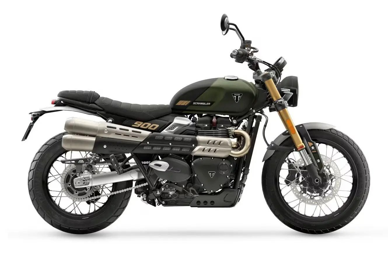 发动机本质上没有变化。它是 Triumph 复古并列双缸中的较小一款,调校更注重扭矩而非峰值功率。宣称的最大输出功率为 64.1 马力,对于 900cc 的发动机来说并不高,但它的最大扭矩在相当低的转速下到达,最大扭矩为80NmScrambler 双管叠加在右侧的设计,但外观是全新的。更重要的是,电子系统经过升级,新增了一个惯性测量单元,使 Triumph 能够增加弯道牵引力控制和弯道 ABS。