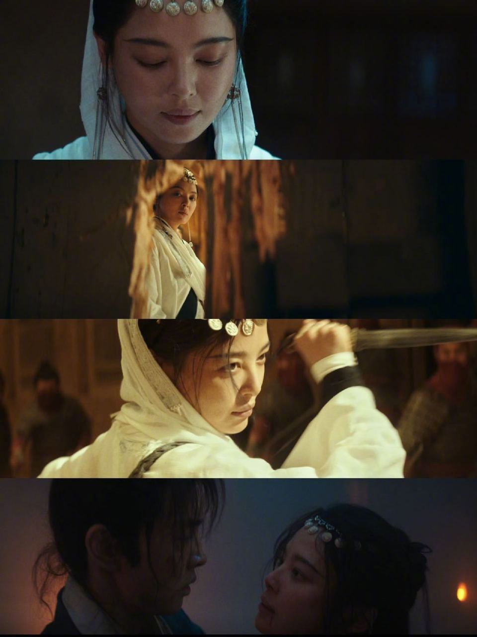 大漠孤烟,雄鹰盘桓。一袭白纱缀于金黄沙丘,章路遥单刀匹马缓缓而行,扑面而来的古龙侠客氛围感,每一帧都是电影级别。出鞘抽刀杀伐果断,眼神里是果敢冷厉;一句“杀了我”,眼里的疯味与破碎感拉满;面对诀别,一双眼睛空洞又绝望,几段眼神戏各有情绪张力,段段直钩人心。