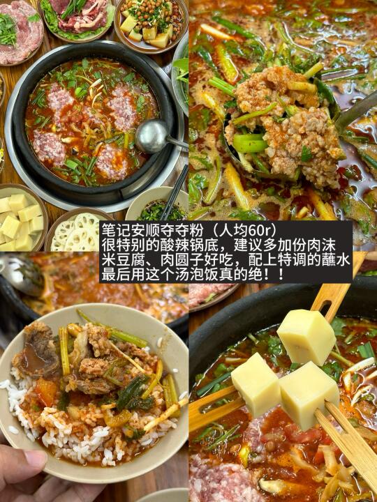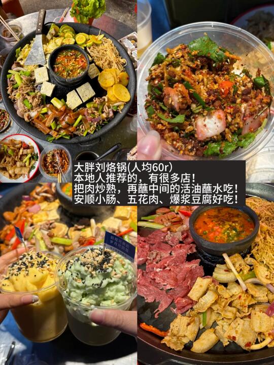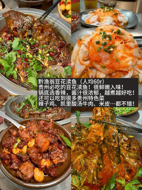 都是我自己吃的一些贵阳美食!!有豆花渎鱼、糯米饭、冰浆、夺夺粉、铁签烤肉等等…我说了下次还会再来的!!!