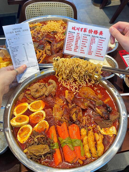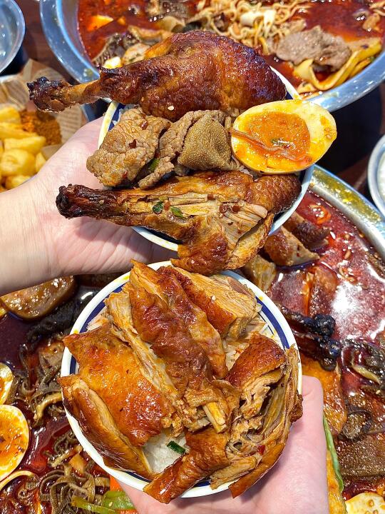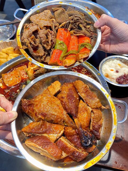在深圳 Nnnnn刷的冒烤鸭小馆子!!尊滴吼吼吃! 每天现烤先斩的烤鸭🦆外皮敲酥脆 浸在香辣的红油锅底里~超上头! 最爱里面的配菜:牛肉、毛肚、青椒虾滑、蟹柳 再来个灵魂泡面!!香迷糊了😭😭😭 最后来个入口即化的冰渣豆花~大满足!!