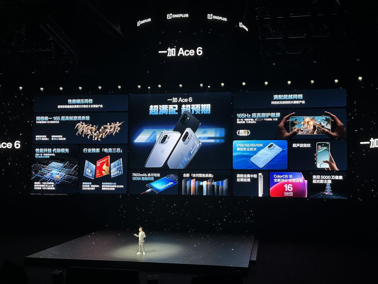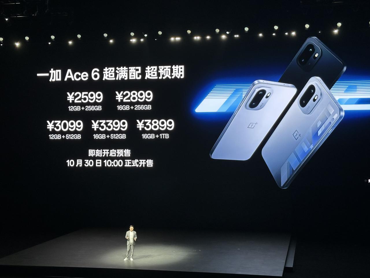 一加Ace6发布 骁龙 8 至尊版+全新风驰游戏内核 1.5K+165Hz 超高刷屏幕 7800mAh 电池+120W快充 IP66/68/69/69K 防尘防水 超声波指纹+金属中框+AG 玻璃 12+256GB 2599 16+256GB 2899 12+512GB 3099 16+512GB 3399 16+1TB 3899 李杰:性能和游戏表现碾压同档产品
