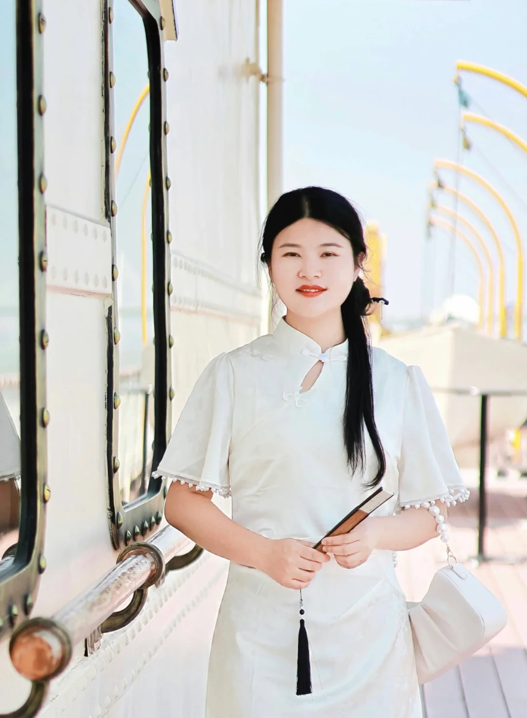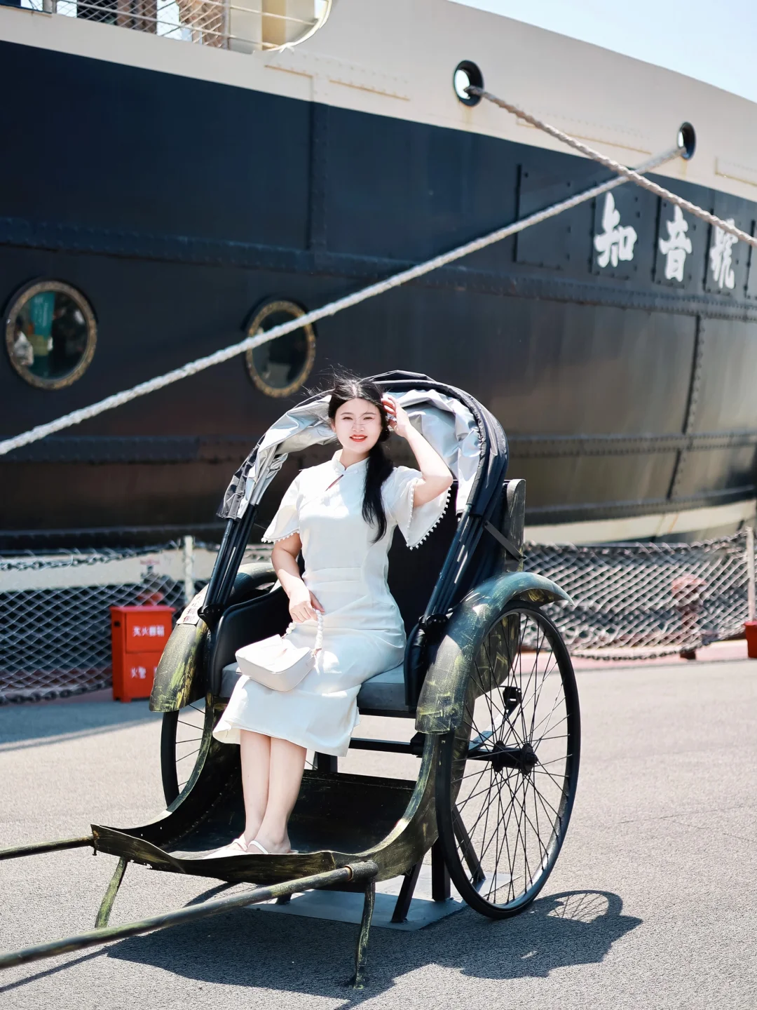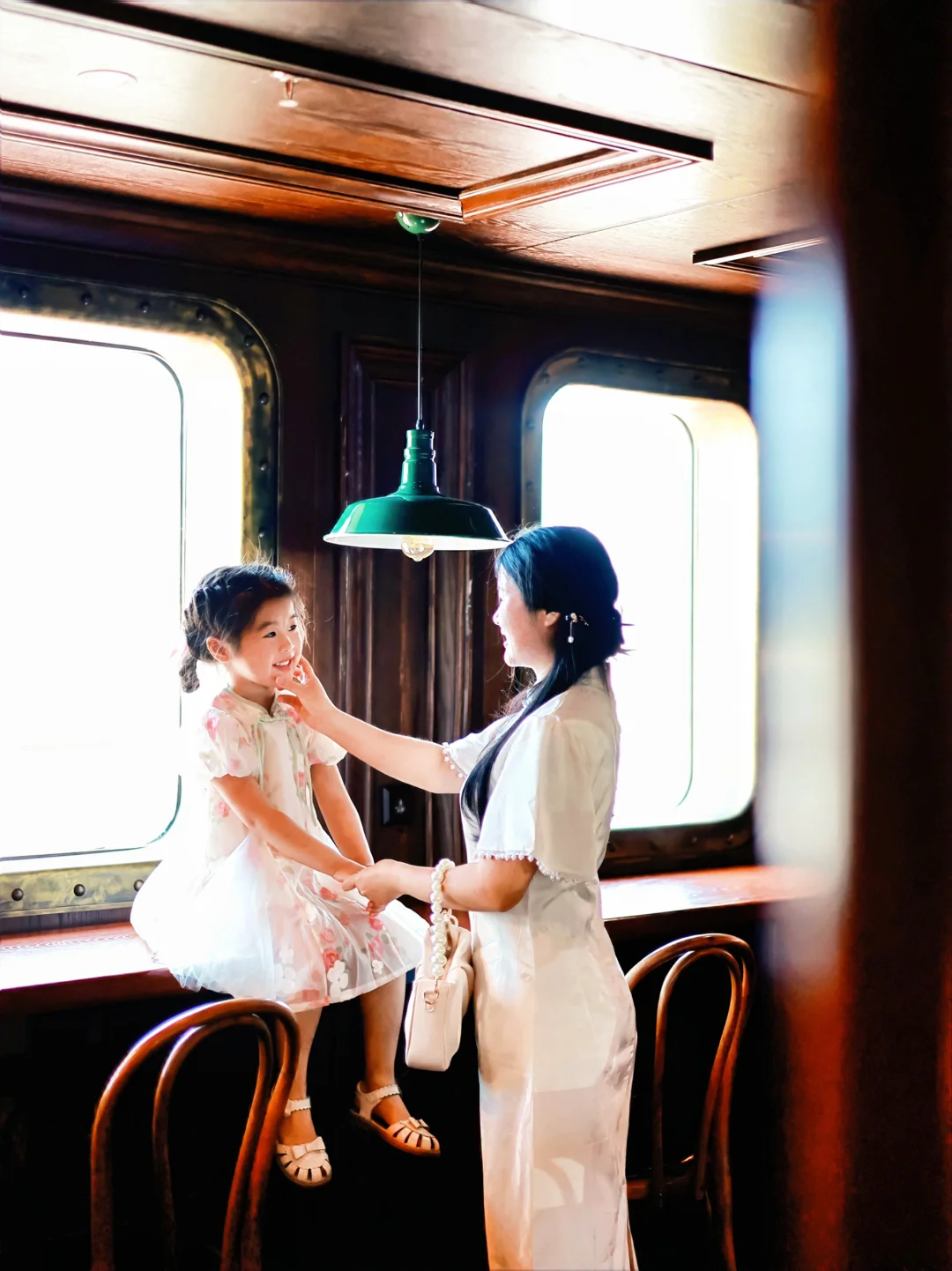 也可以跟女鹅穿浅色系的亲子旗袍,码头门口也有服装租赁,有各种复古旗袍衣服可以选择!