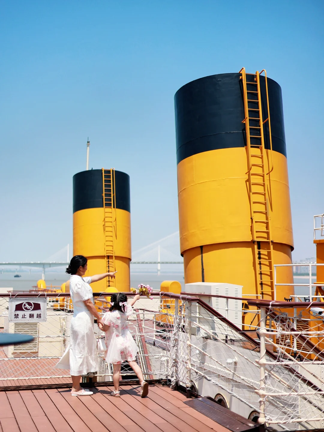 ✅顶层甲板:夜晚有炫丽的江景灯光效果,白天可以带娃吹着风欣赏着江景,👀轮船🛳️ 在波光粼粼的江面…拍照也很出片!