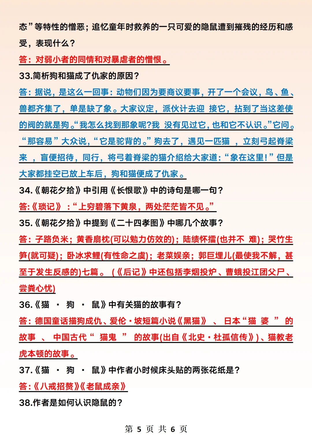 七上《朝花夕拾》30天早背晚默小纸条‼️