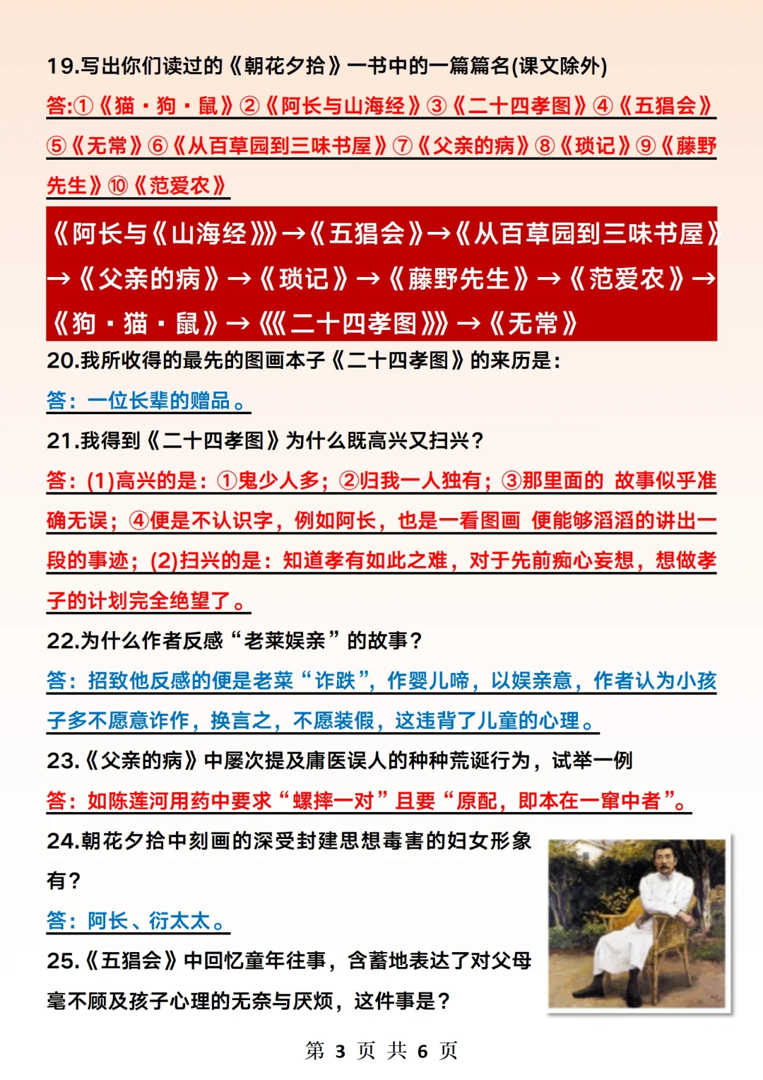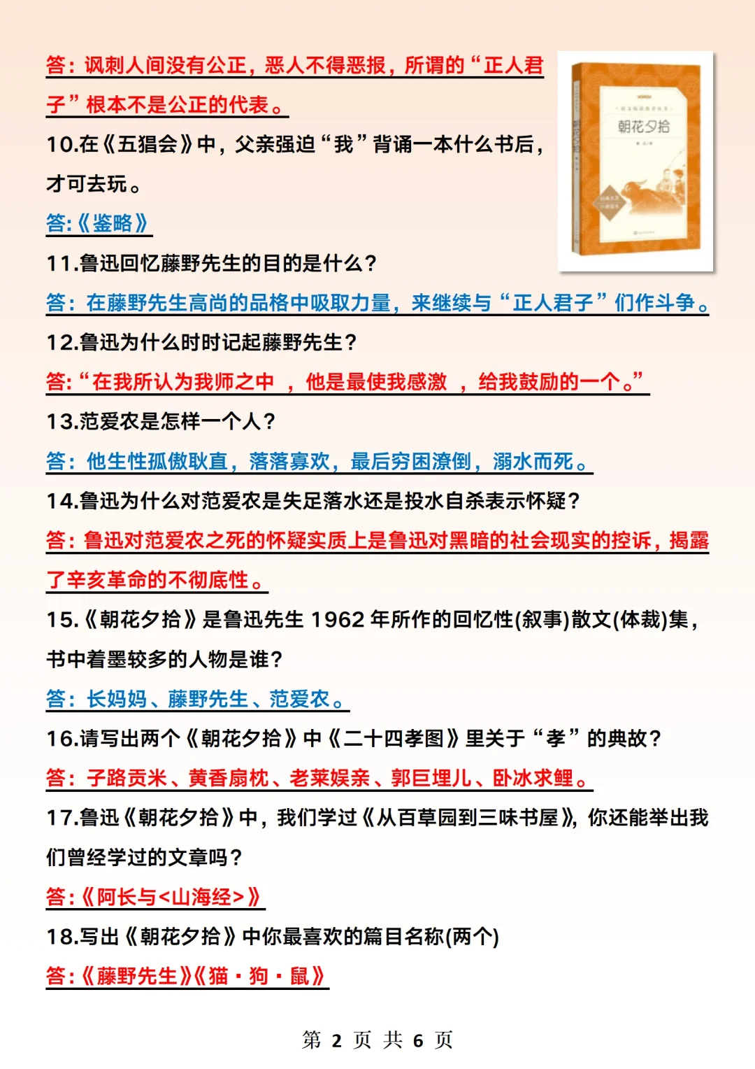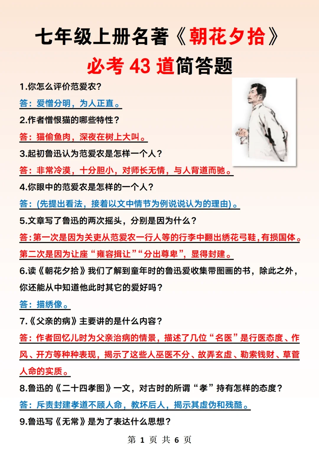 朝花夕拾 初中名著 必考考点 朝花夕拾读书笔记 鲁迅 七年级语文学习 七年级语文上册 小升初语文学习 家长必读 开学必备