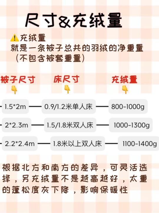 5⃣️尺寸&充绒量的关系见图5⬆️