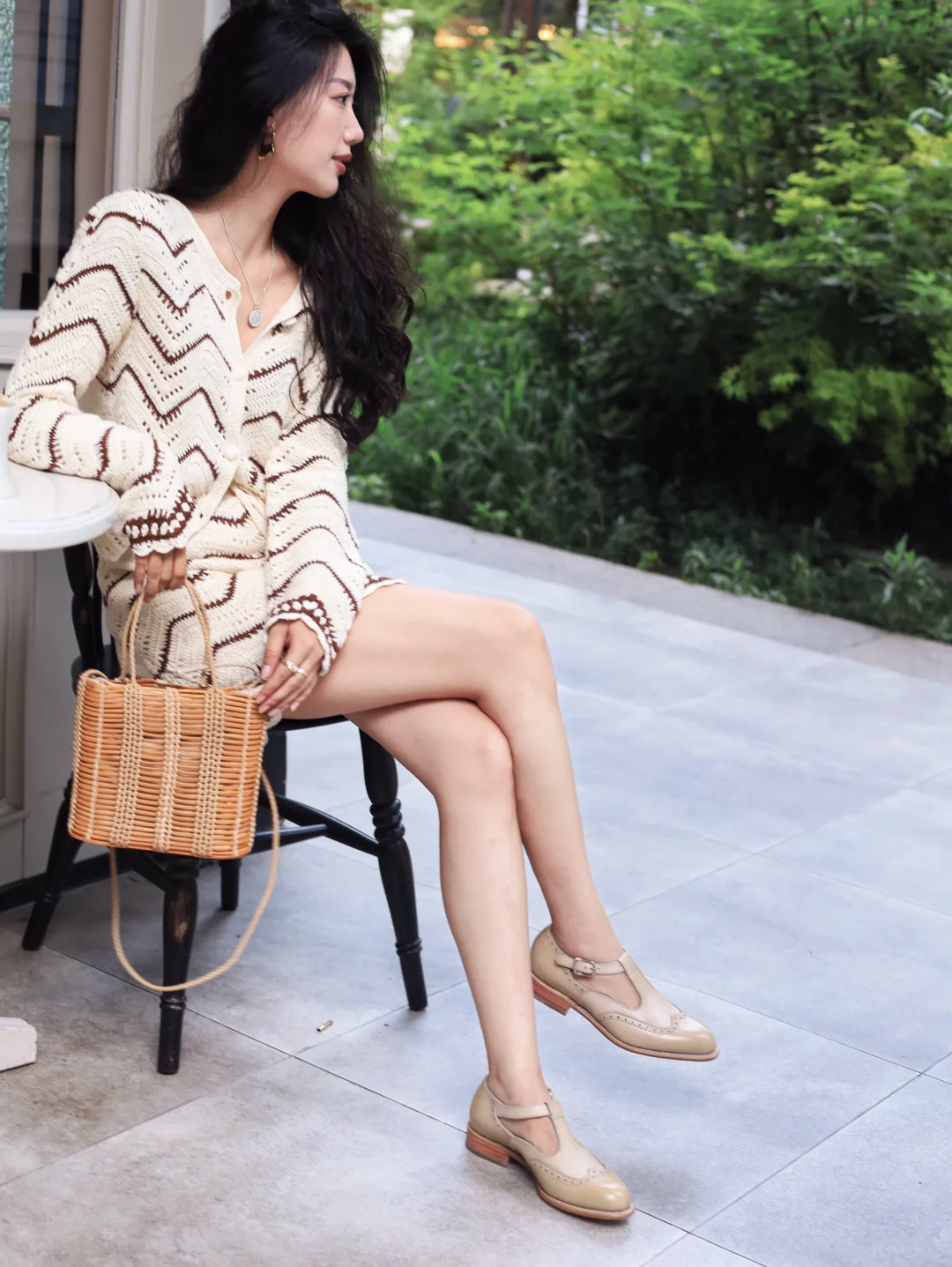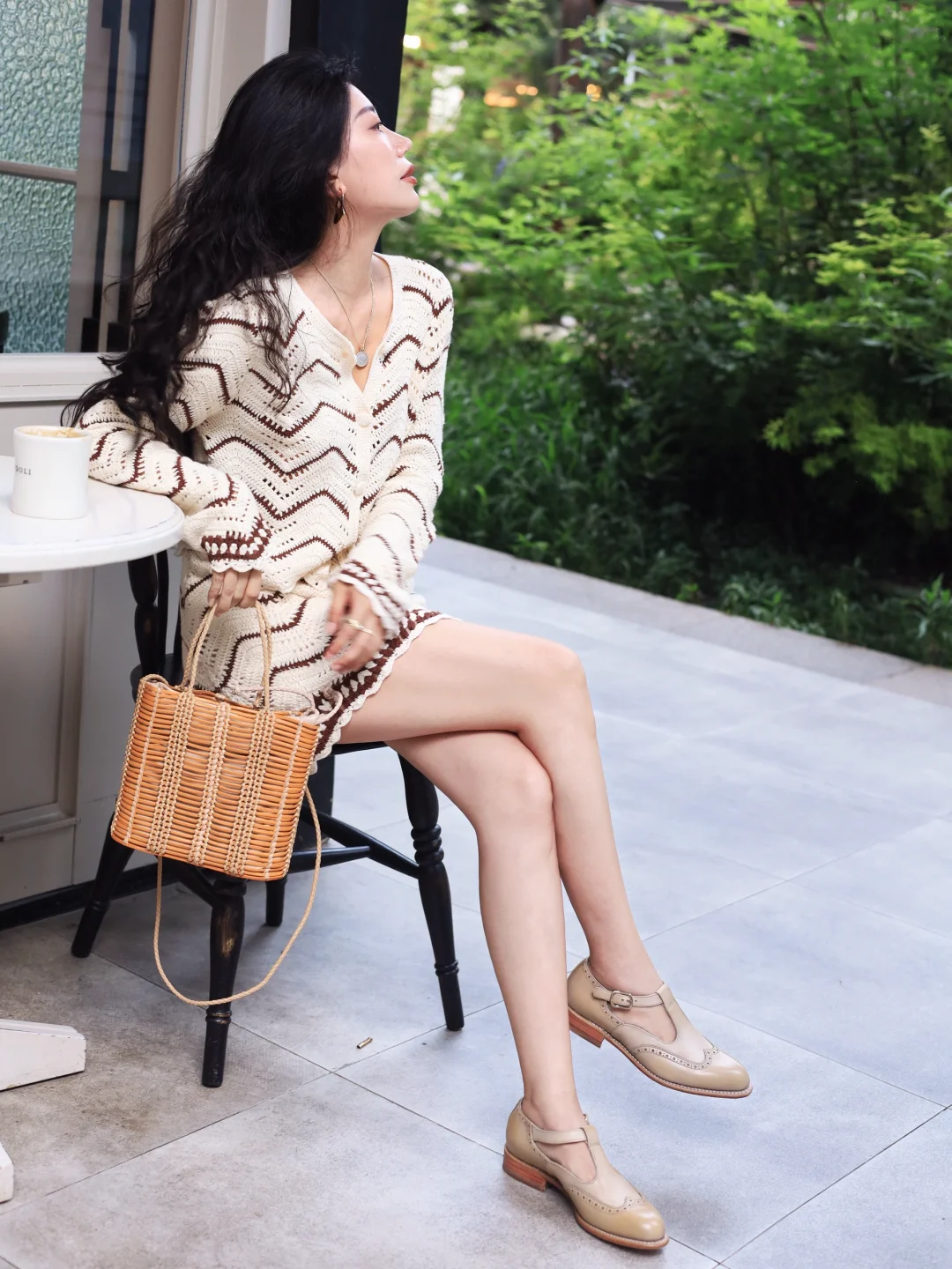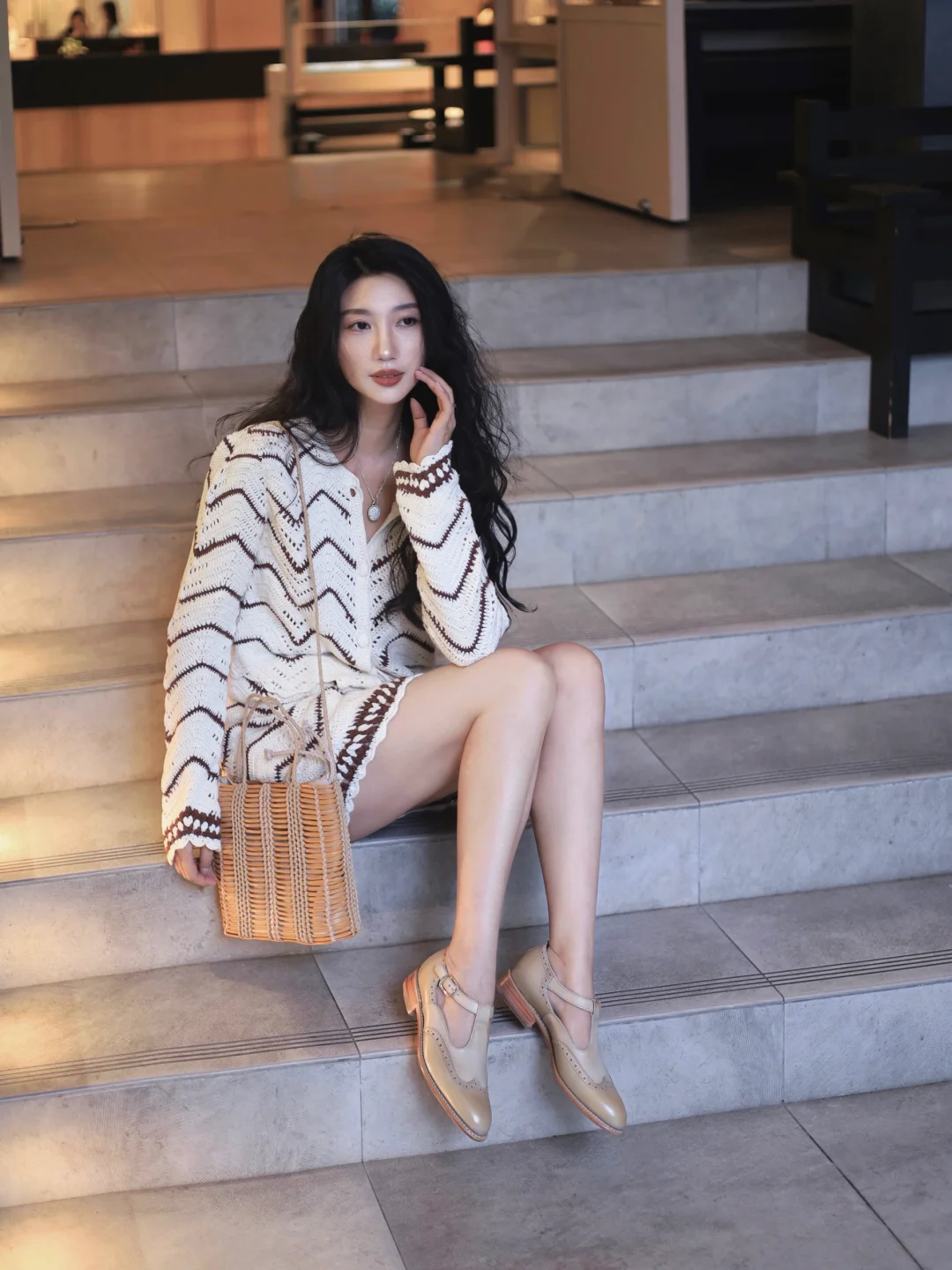 最近喜欢上淡人天菜莫瑞系穿搭 舒适质朴的自然色系与天然材质的结合 可以说是将自然松弛的状态很好的呈现 舒适的钩花针织套装 一丝松弛度假气息 蜜瓜绿手工玛丽珍鞋适配夏日的放松闲适 草编包将天然材料的生命力和艺术性呈现 夏日的烂漫优雅与休闲舒适的完美融合