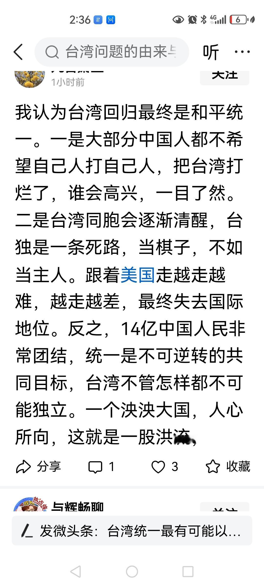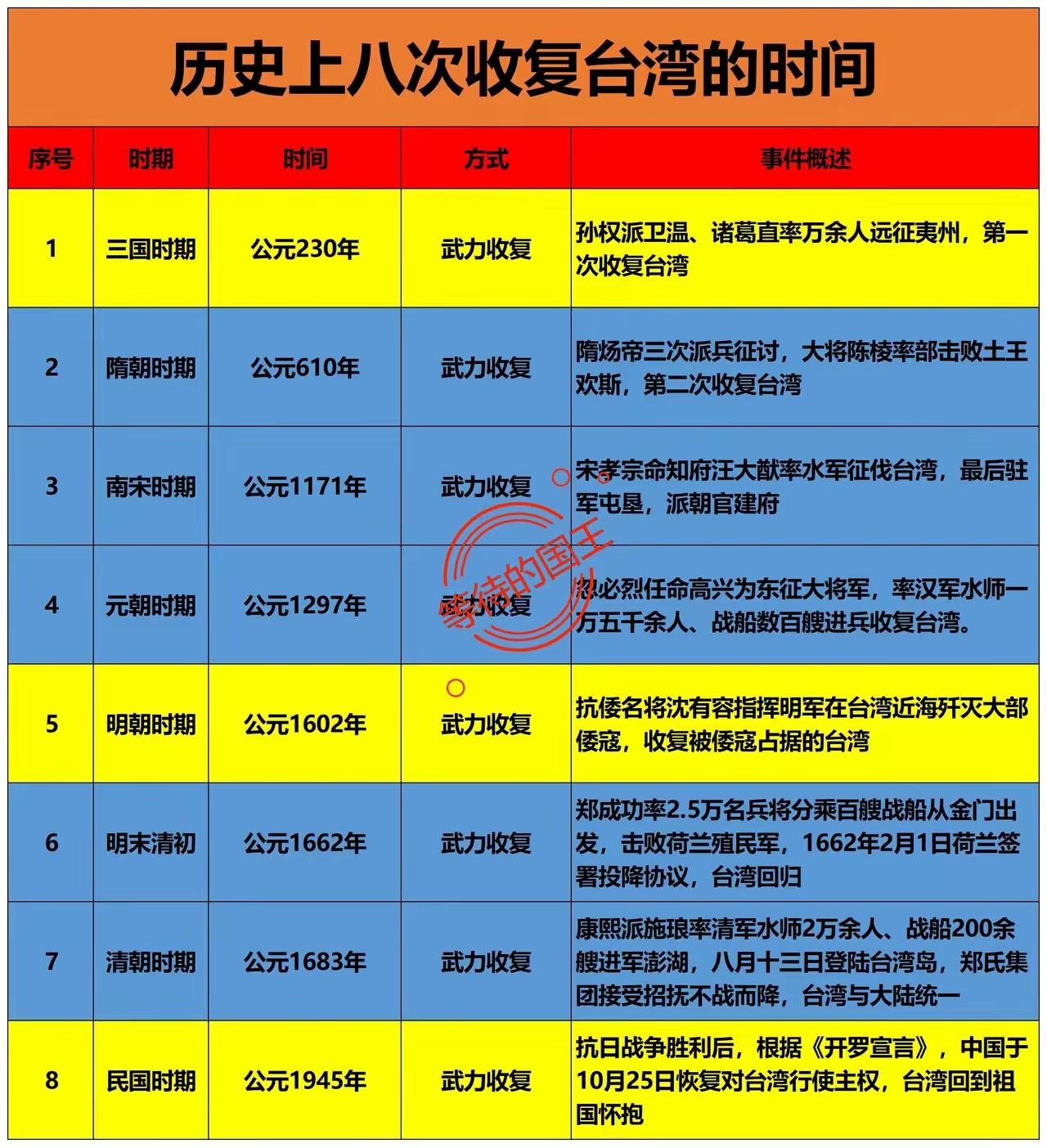 我不知道为什么这位作者说希望和平统一的人是大多数?你有什么证据证明他是大多数??(图一) 我们希望和平统一台湾,这是一种良好的愿望,但这仅仅是愿望。所有和平统一的背后,都是武力做后盾。 如果没有证据,那么我讲一个我自己的看法,希望武力统一的人群,随着台独分子的越发嚣张,远超希望和平统一的人群,要不然你就拿出证据来批驳我。 台湾有庞大的群体,认为自己不是中国人(请参看台湾媒体自己的报道,他们有一个详细的比例),在多个新闻报道和历史记录中显示的很清楚,他们不是自己人,我不明白在祖国的论坛上为什么有多个人讲,台湾人群是自己人,台湾人群中只有统一派人群是自己人,其他的绝非是自己人。 台湾有两种人,第一认为自己不是中国人,另外一种是认为自己就是中国人,但是我有一个疑问,即便对于第2种人,我也有一种很坦诚的疑问: 你必须让他们讲一下中国的全称是什么?我们讲的中国的全称是中华人民共和国。 台湾讲的中国名字是什么?我早就说过多年相同的话,奉劝台湾人群,民国已死。 台湾人必须明白民国已死,台独必死。在台湾有大量的新闻报道延续了很多年,他们认为自己不是中国人,请问人家都不认为自己是中国人,难道我们非要强行认亲戚? 何必舔着个脸认为他就是中国人呢?我们只有一个问题,既然他们不是中国人,是什么人?中国的土地上不允许非中国人长期占领。 中国在历史上有8次有关台湾的收复操作,没有一次是和平解决的,包括1945年也是因为战争影响的结果。(图2) 台湾在长达数10年的过程中长期在祖国大陆有将近百万人在这里生活工作,他们好歹也有几个亲戚吧,几个朋友吧,这么大的人群,难道他们回去不说祖国大陆的事情吗?请问茶叶蛋的笑话,就是在这种背景下产生的,难道他们回去以后集体说了谎?在这里我直白的讲这帮人,在祖国是一套,回去以后又是另外一套,是整个台族群的问题。 我们认可血缘方面的连接,认可中华民族的血浓于水的亲情关系,但所有的认同和认可都基于双方都有这种意愿,如果有一方不承认自己是中国人的情况下,我在这里可以斩钉截铁的讲,他们不是自己人,他们不愿意承认是中华民族一员的时候,那就把他永久开除出去,请他们以后不要说是我们自己人,我们对待自己人,要以礼相待对待这些外人,还讲得上什么?以礼相待吗? 我提醒台独分子和一帮善良派,当我们越过海峡中线的时候,你猜!我们有没有可能再往前走一步呢?也或者是一步又一步的向前逼近呢? 我们都希望和平,但我们讲的和平是对统一派人群的和平。