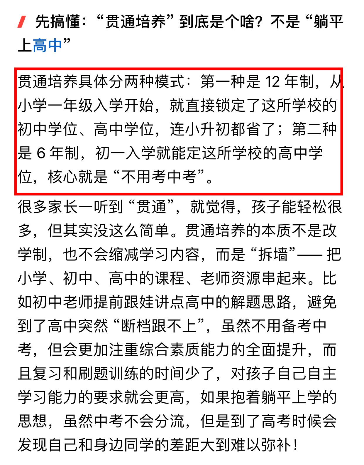 看完张雪峰辟谣(解释)成都取消中考的文章,感觉他又悄咪咪干了票大的,全文都在讲没取消中考但处处都在说确实不需要中考…… 取消中考对整个教育结构影响太大,成都只是开了试点,人多到需要摇号才能进,张雪峰也知道这不代表要取消,但他优点缺点列了一大堆,没直说但一贯制的核心就是不需要考试直接进【定好的】高中,对于要去重点的不行,但普通孩子上学可以松口气,只是张雪峰不能明说,毕竟距离推广差得太远。