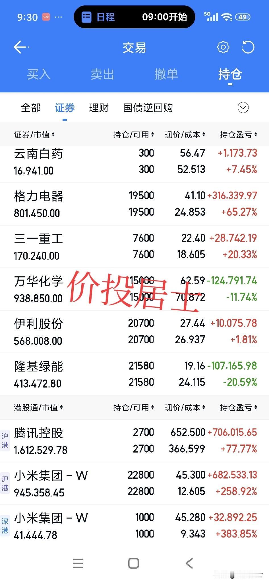 隆基绿能的董事长投资也是够专业的啊[大笑]最近又开始增持自家股票了,陈发树撤退,高瓴资本减持,正好人家董事长自己买! 其实陈发树和高瓴资本在低位的减持,有人说是止损,有人说大佬的看法是对的,我一直持有相反意见,如果说他们现在低位减持是对的,那么他们当年高位追涨算什么?难道也算是对的?肯定不算吧! 顺着这个逻辑,他们当年高位追涨既然是错误的,事后也证明了,我又凭什么认为他们低位减持是对的呢?这些也得事后看吧。况且隆基的董事长在低位一直在增持。我承认高瓴资本和陈发树是大佬级别的,然而对于隆基的了解,比起人家隆基实际的管理者还是不如吧!是不是这个道理? 所以我们可以参考大佬,但是不能迷信大佬,大佬也不是不会犯错!通威的三季报出来了,同比也是大幅度减亏,个人感觉隆基这次三季报最低限也会是大幅度减亏,之前亏损大也是有计提减值的影响!三季度隆基即使不扭亏为盈,估计未来也快了[大笑]