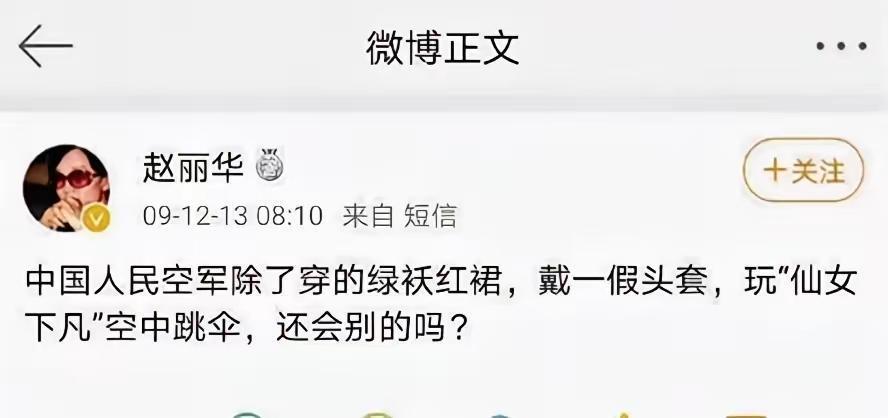 这个赵丽华到底是什么人,这么狂妄,敢公然污辱中国人民空军,它这构成犯罪了吧,应该